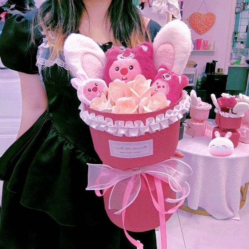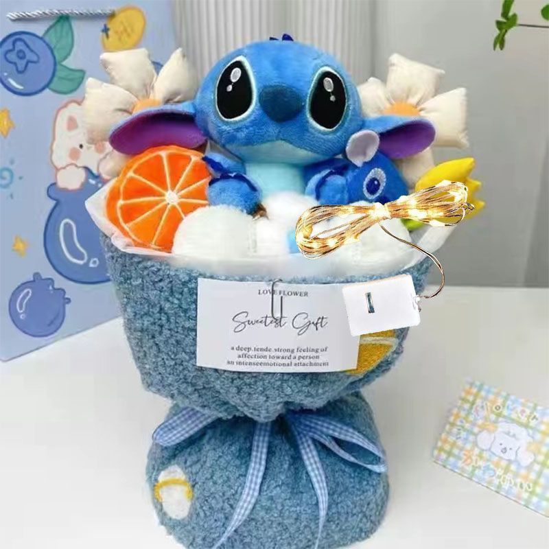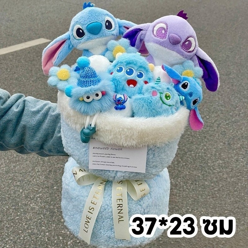 COD ช่อดอกไม้ตุ๊กตา ช่อดอกไม้ Stitch เย็บร้อย ถุงของขวัญ + การ์ดอวยพร ของขวัญวันเกิด ของขวัญวาเลนไทน์