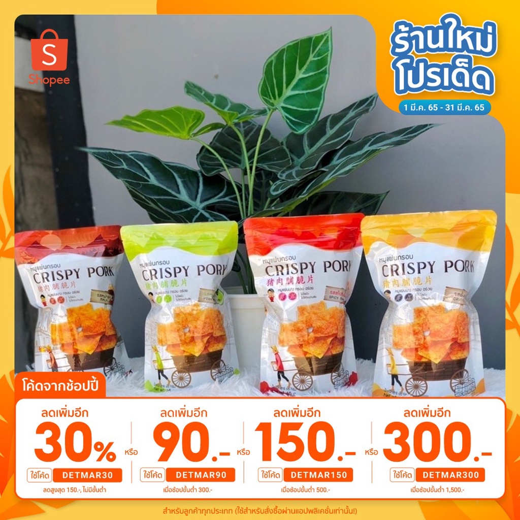 [พร้อมส่ง] หมูแผ่นกรอบ CRISPY PORK มีให้เลือก 4 รสชาติ หมูแผ่น ขนาดใหญ่ 65 กรัม