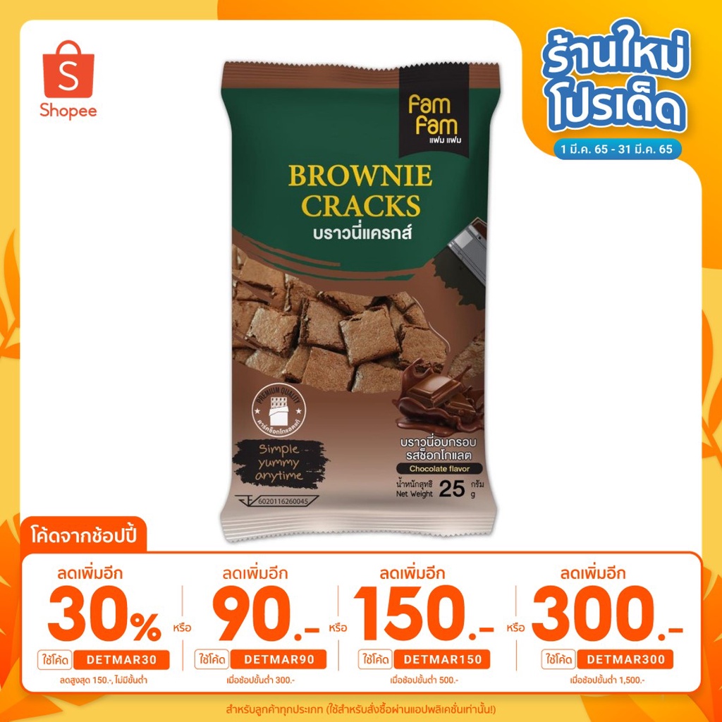 [พร้อมส่ง] บราวนี่แครกส์ บราวนี่อบกรอบ แฟมแฟม ดาร์กช็อกแท้นำเข้า ขนาด 25 กรัม บราวนี่เข้มข้น แดรี่โด