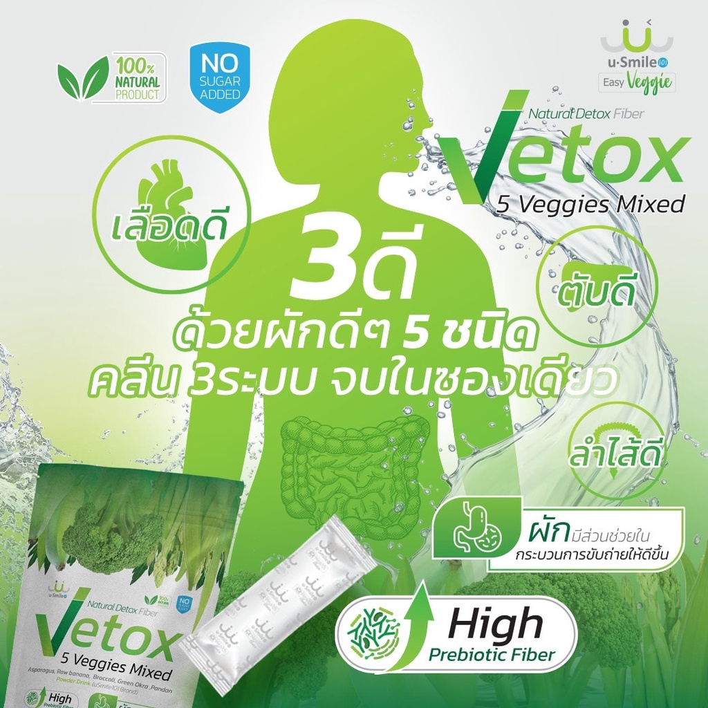 ผงผักรวม 5 ชนิด vetoxขับล้างสารพิษ ซองพกพา