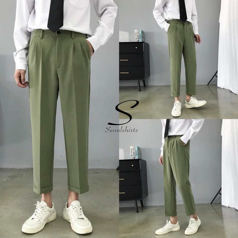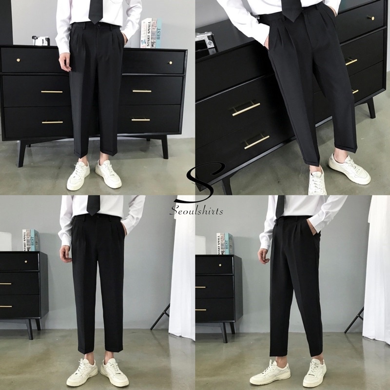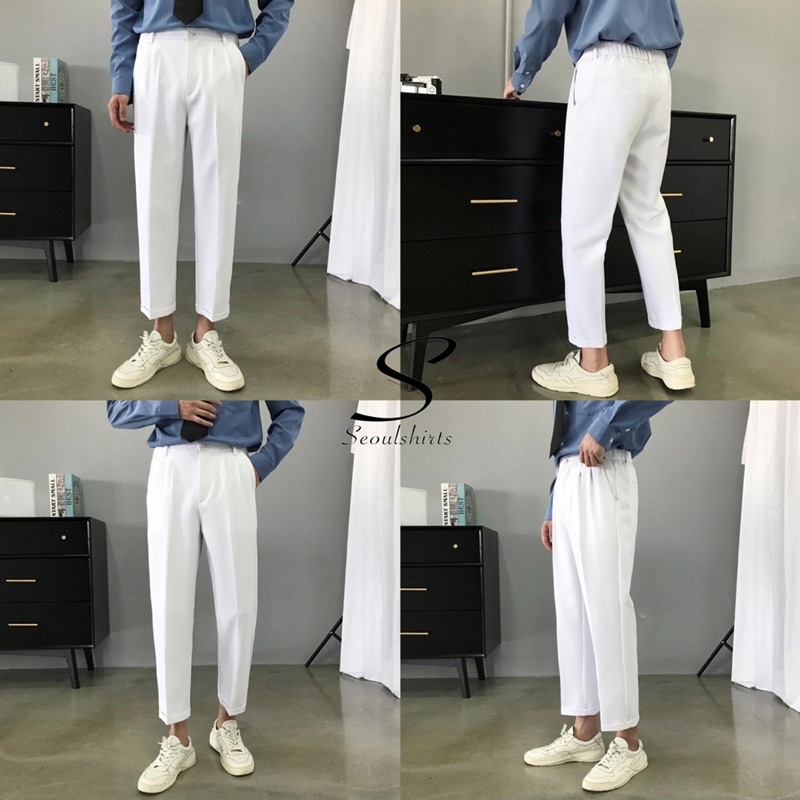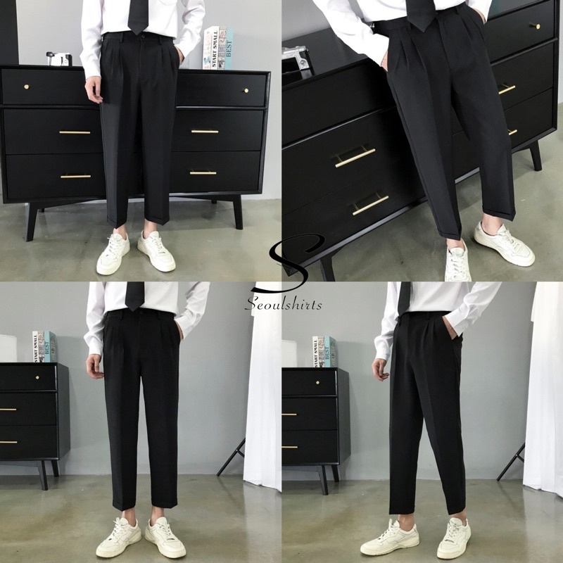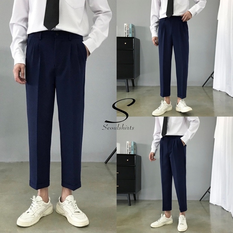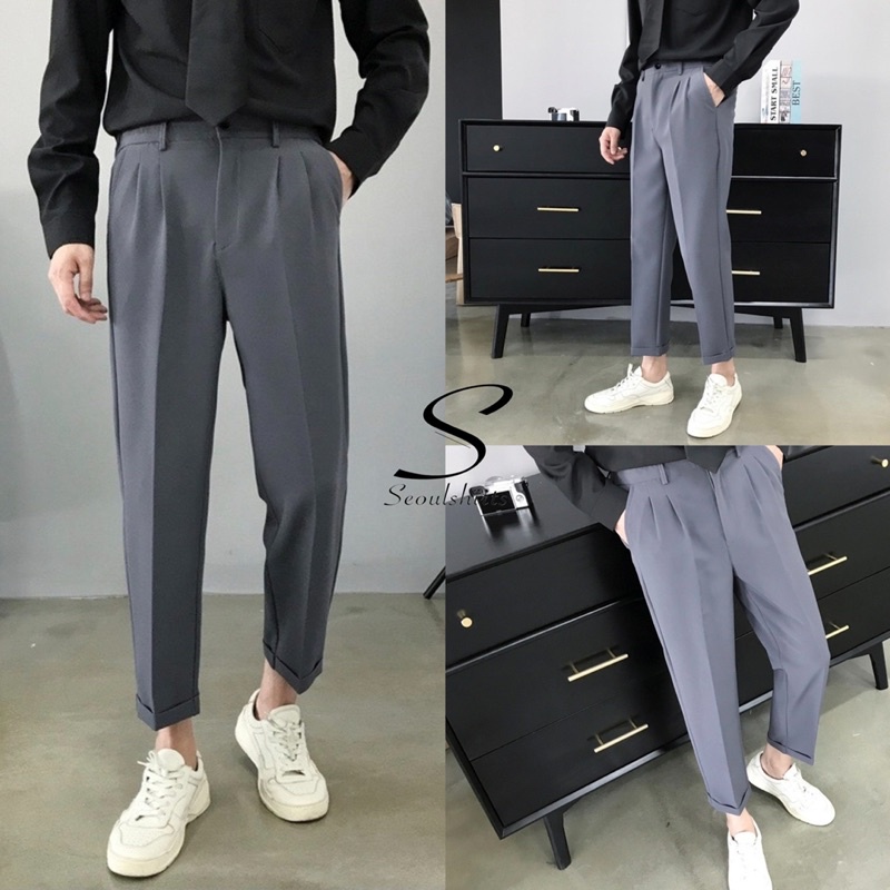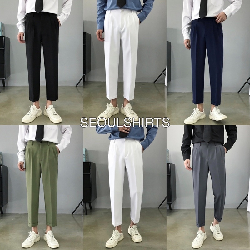 🇰🇷 พร้อมส่ง กางเกงสแลค พับขา ทรงกระบอก ทรงสวยมากๆ เอวสูงขาเต่อสไตล์เกาหลี เอวสม็อคยืดได้ P031