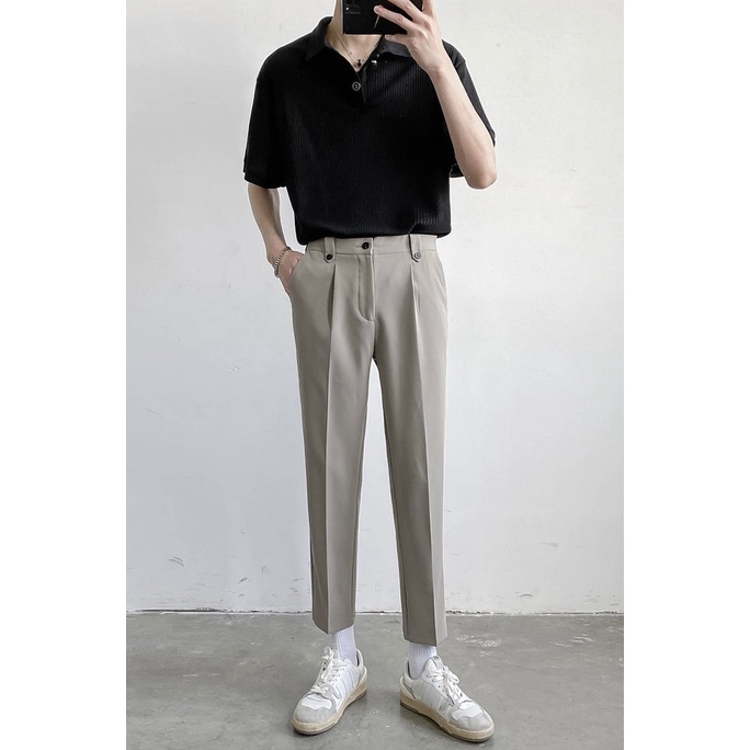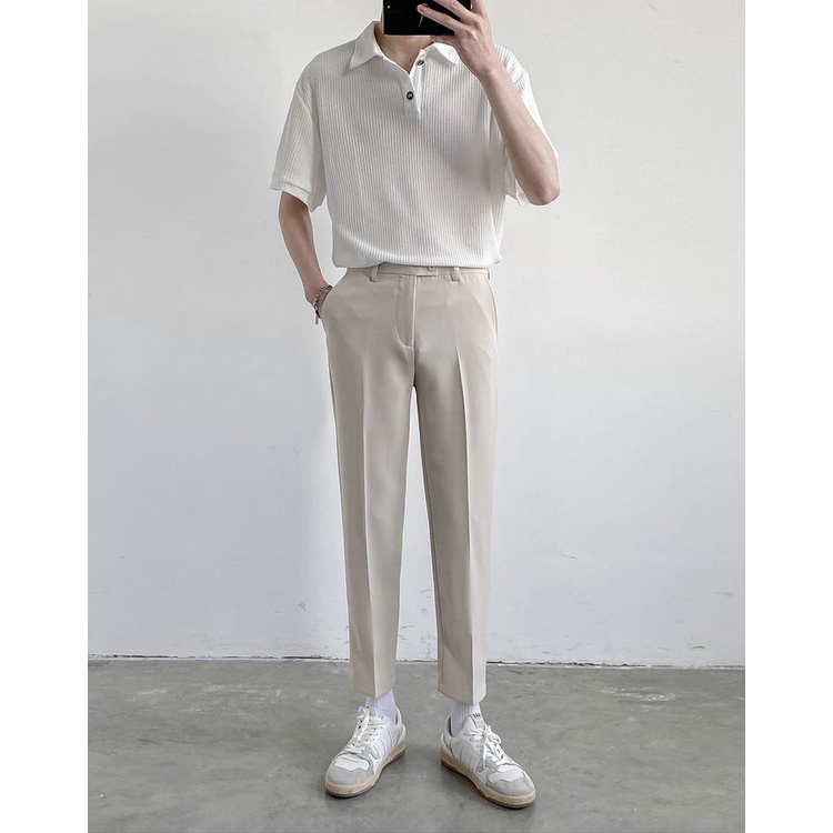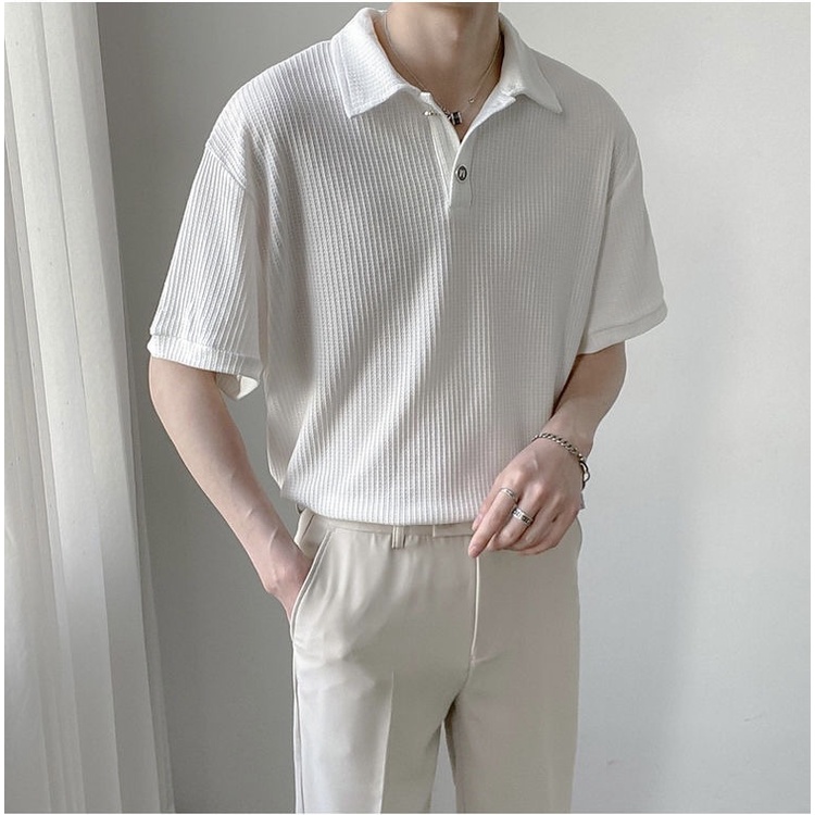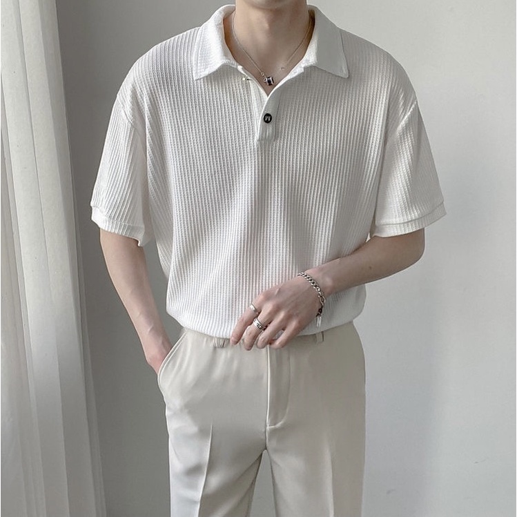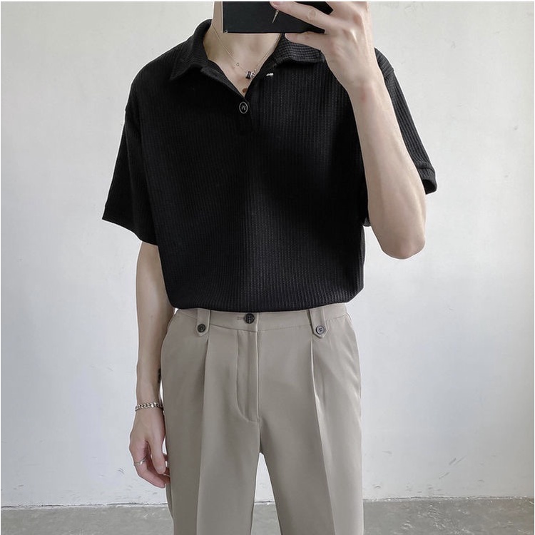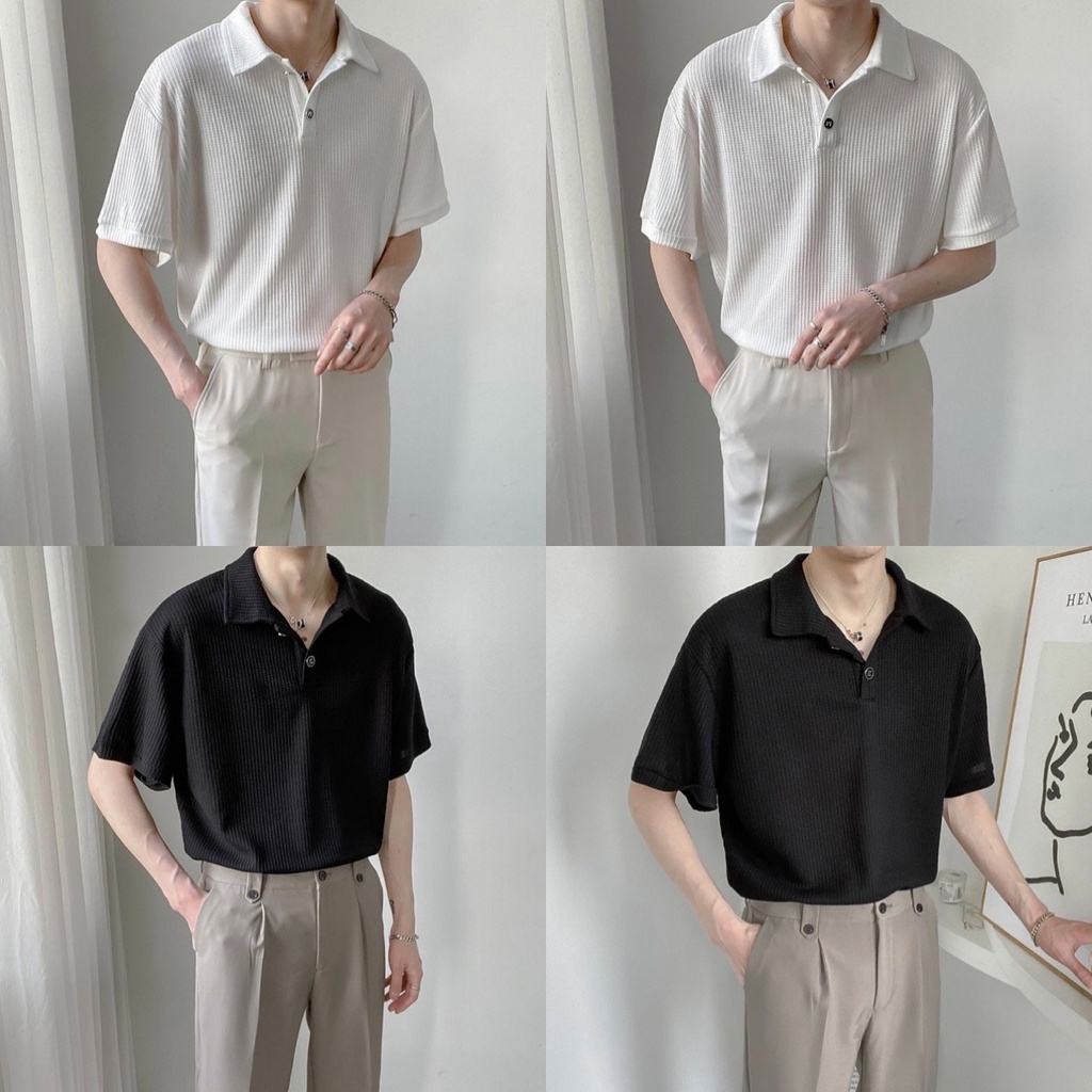 ใหม่พร้อมส่ง เสื้อคอปกแขนสั้น กระดุมดำ ผ้าหนาไม่บาง ใส่สบาย งานดี สไตล์เกาหลี C26