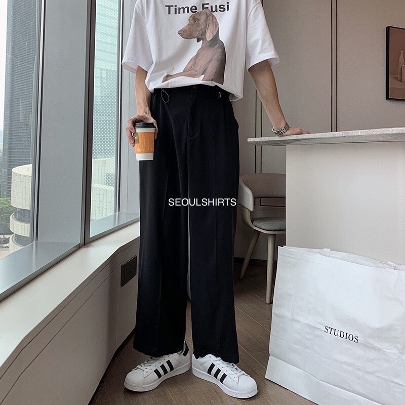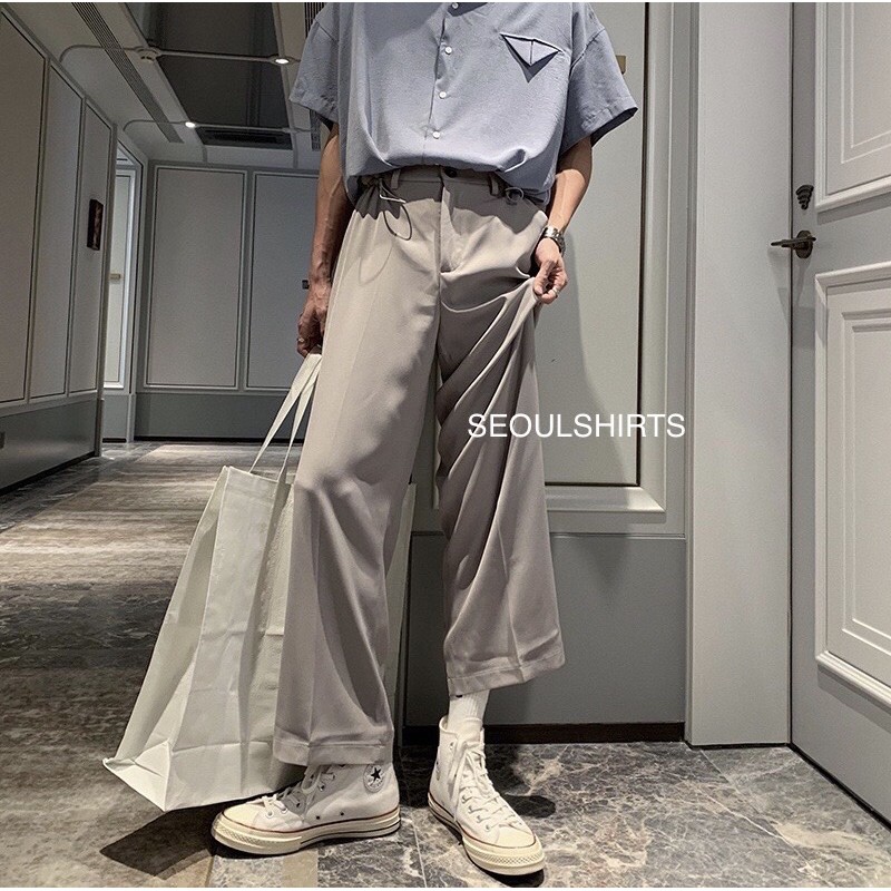 ใหม่🇰🇷 กางเกงกระบอกใหญ่ รุ่นมีเชือก สไตล์เกาหลี ทรงเอวสูง ขาลอย ผ้าทิ้งตัว ใส่สบาย P010