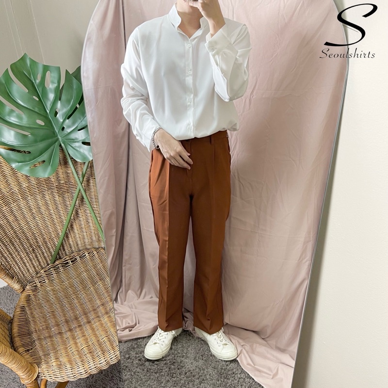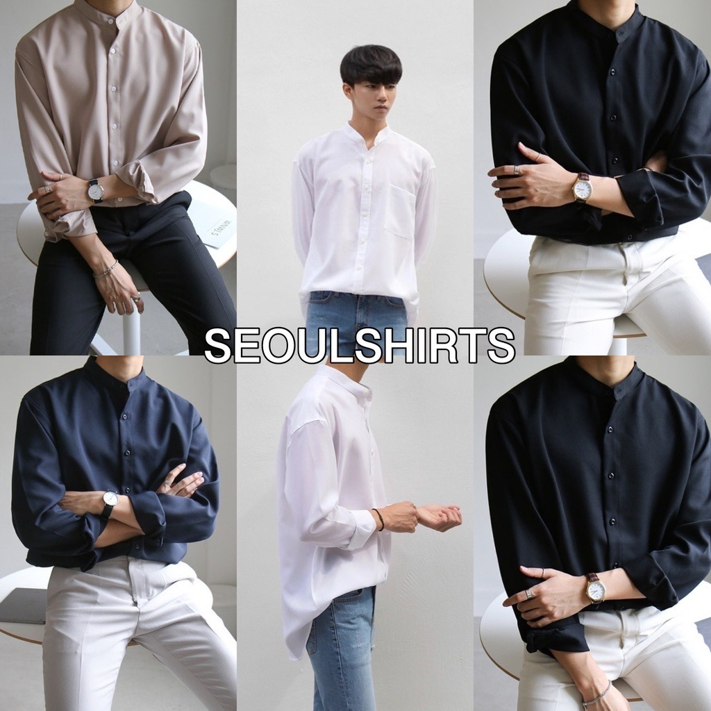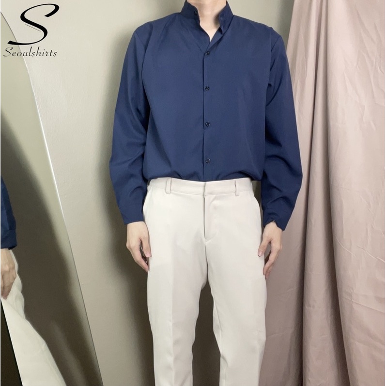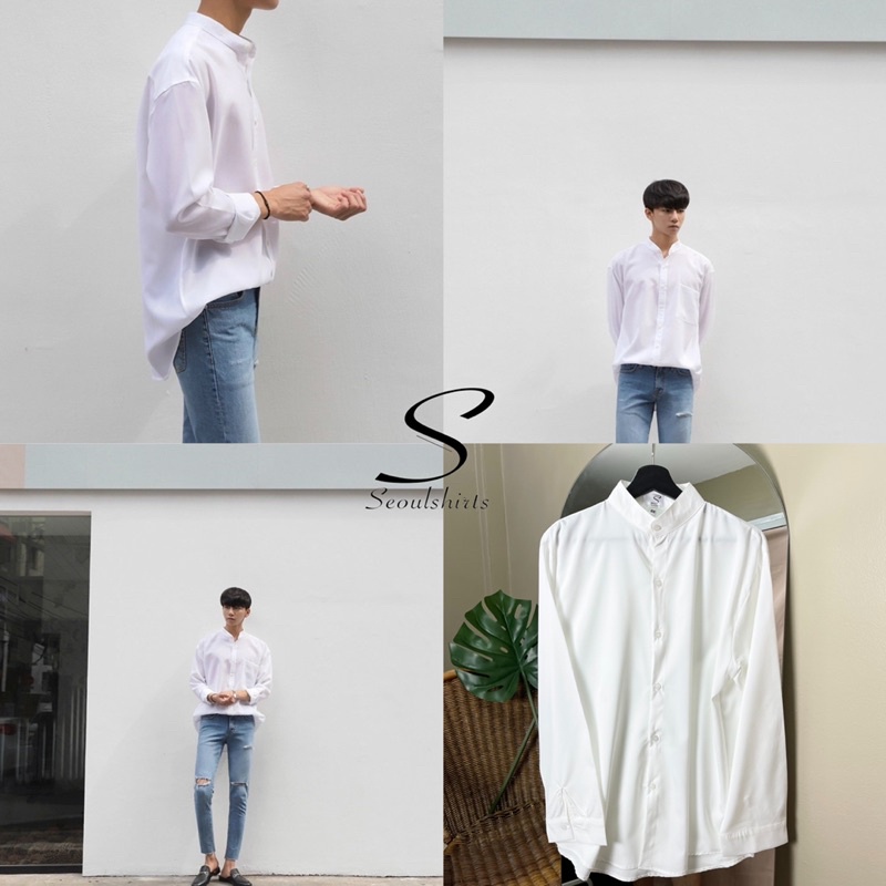 [ส่งทันที กทม.1 วัน] S6: เสื้อเชิ้ตคอจีนแขนยาว สีพื้น พร้อมส่ง ไซซ์ M L XL XXL ผ้านิ่มใส่สบายไม่ร้อน