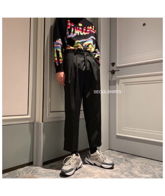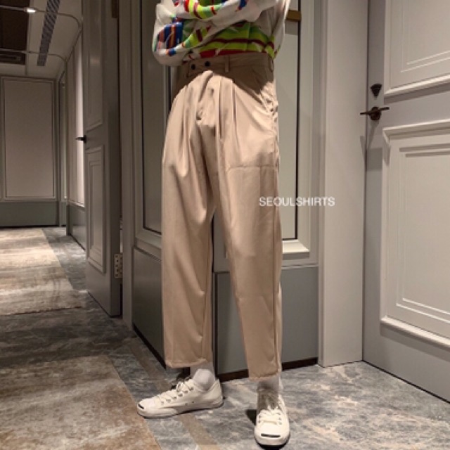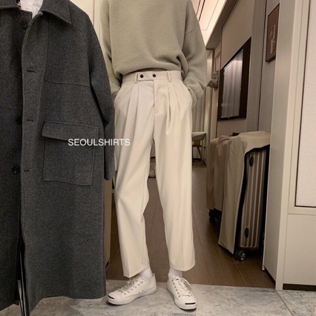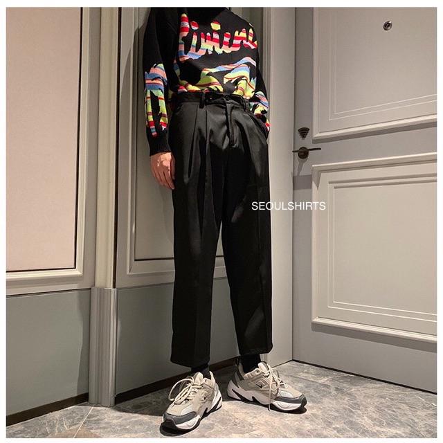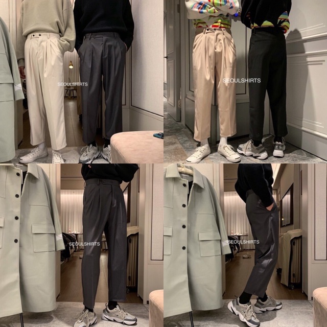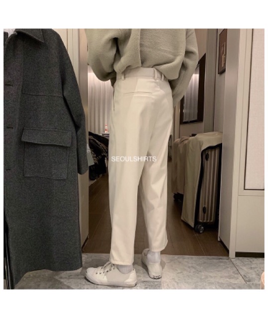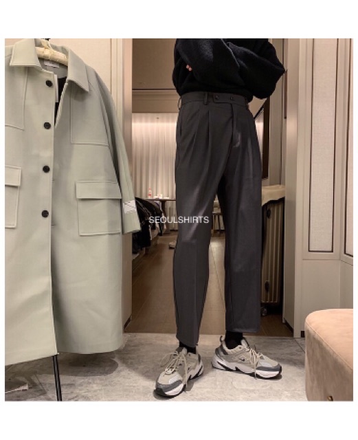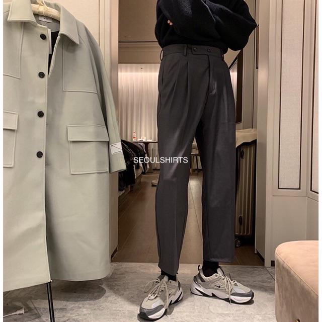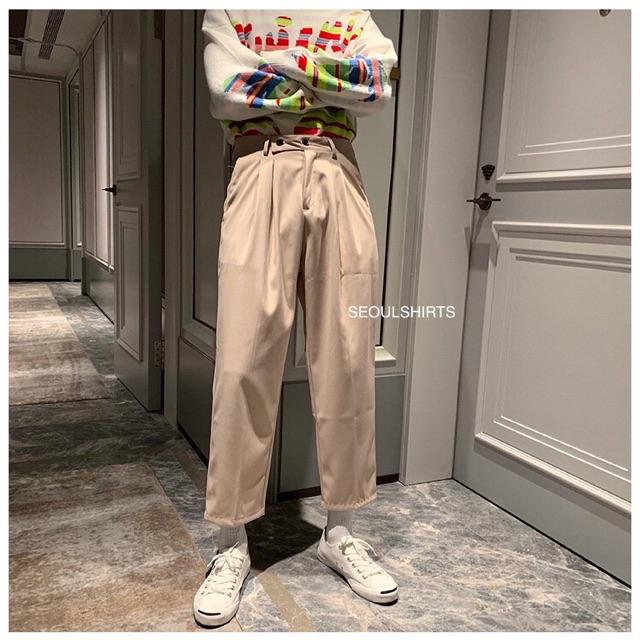 🇰🇷 พร้อมส่ง 4 สี! กางเกงลำลองผู้ชาย สไตล์เกาหลี กางเกงทรงกระบอกเล็ก จีบหน้า ทรงสวยมากๆ กางเกงสแลค ผ้าใส่สบาย P02