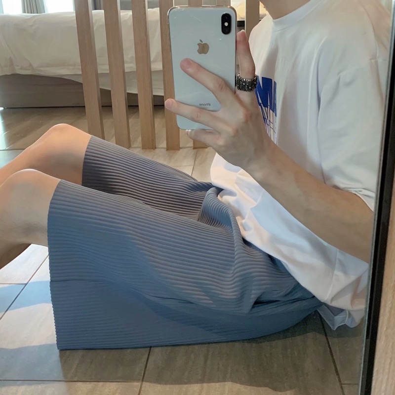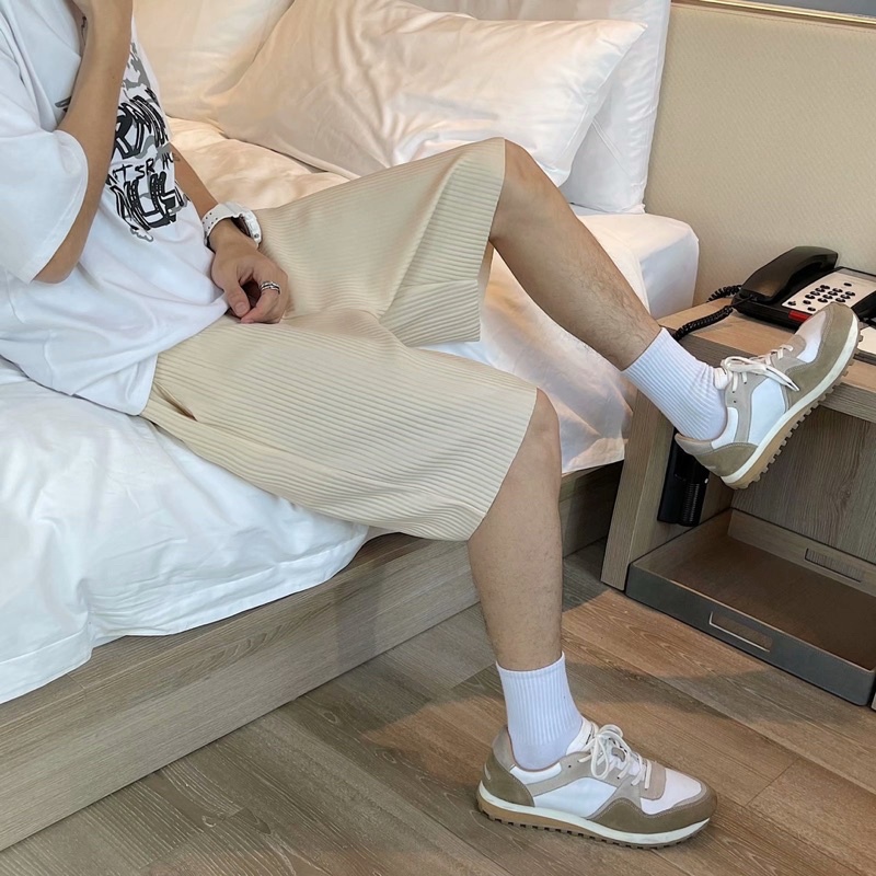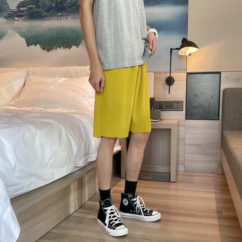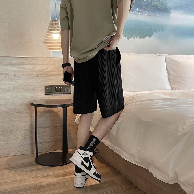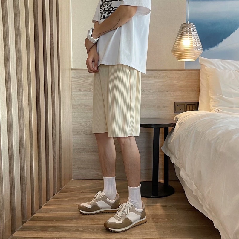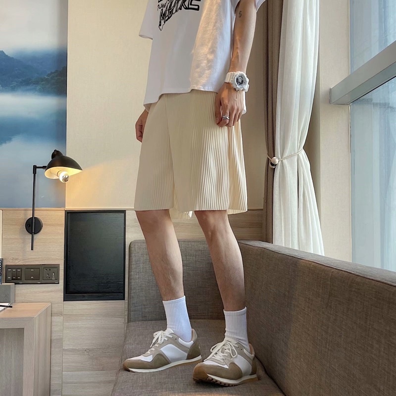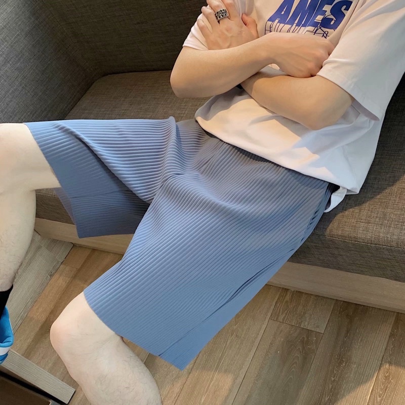 พร้อมส่ง! กางเกงอัดพลีท ขาสั้น (รุ่นผ้าร่องใหญ่) เอวยืดได้ มีเชือกปรับขนาด ใส่เที่ยว ใส่อยู่บ้าน ใส่นอนได้สบายๆ ST11