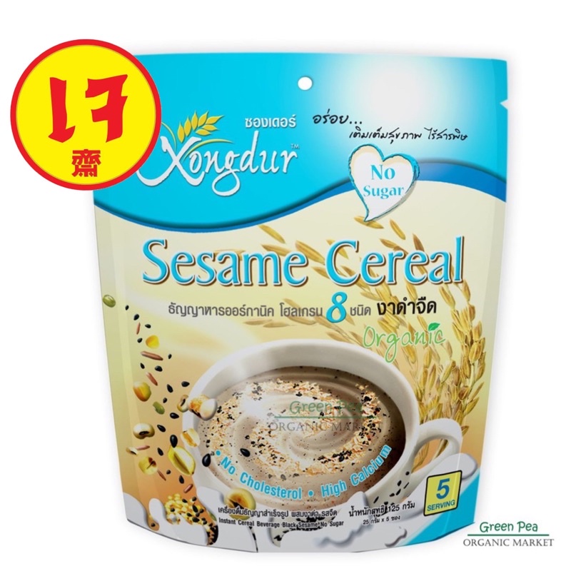 Xongdur เครื่องดื่ม ธัญญาหารงาดำ รสจืด ออแกนิค*แพ็ค5ซอง [ฟ้า] Organic sesame cereal