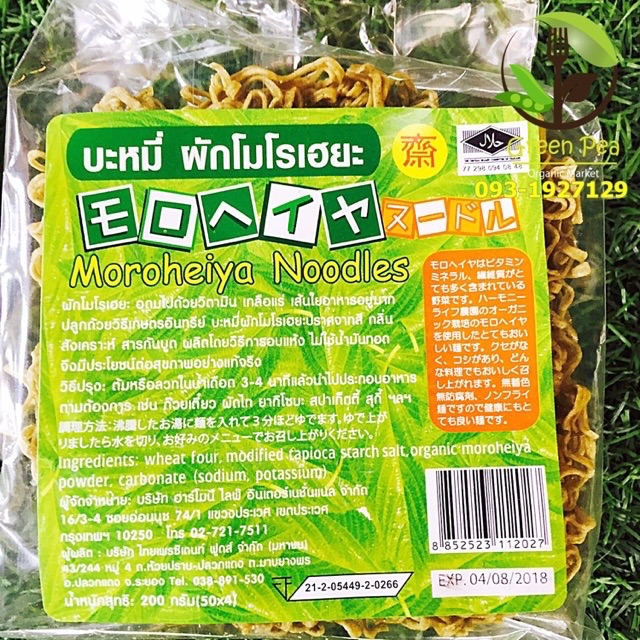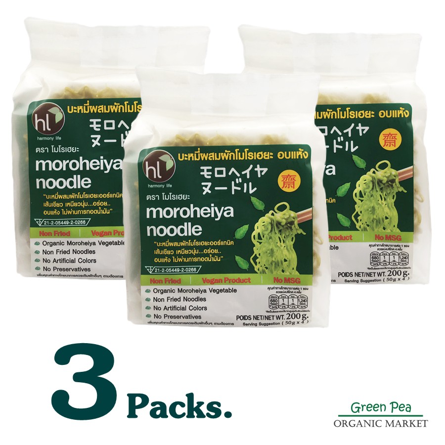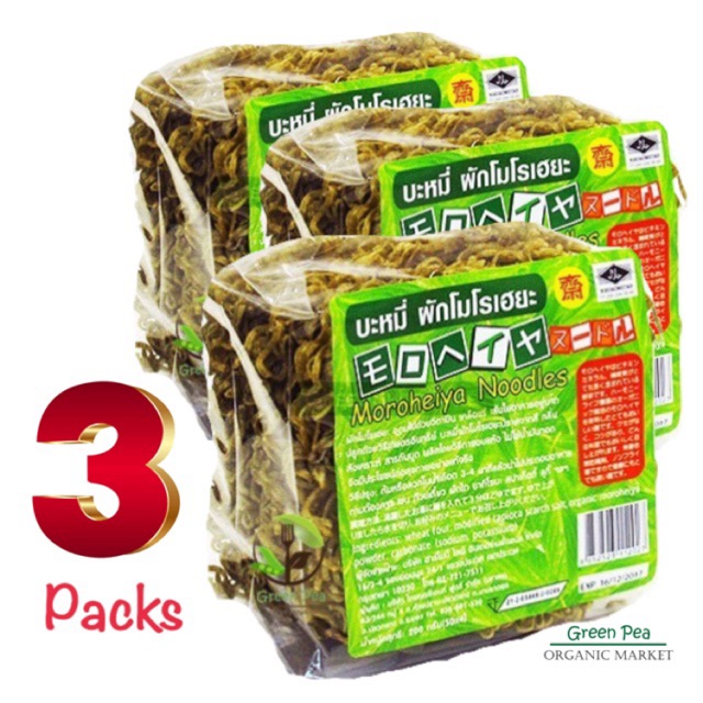 บะหมี่ผัก โมโรเฮยะ 4ก้อน 200 กรัม [ 3ห่อ ] ไม่มีเครื่องปรุง Vegan/เจ