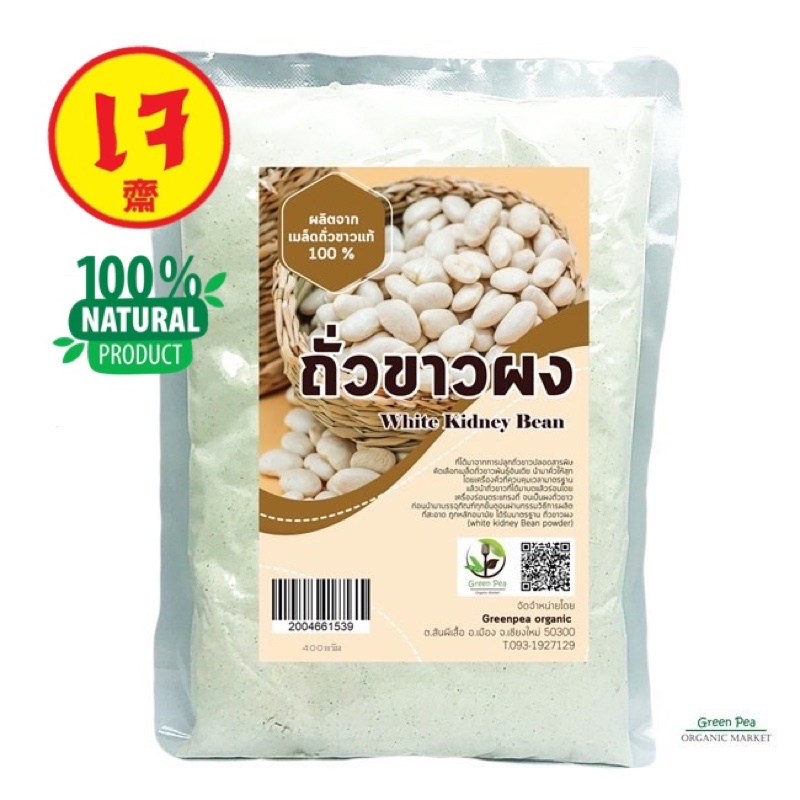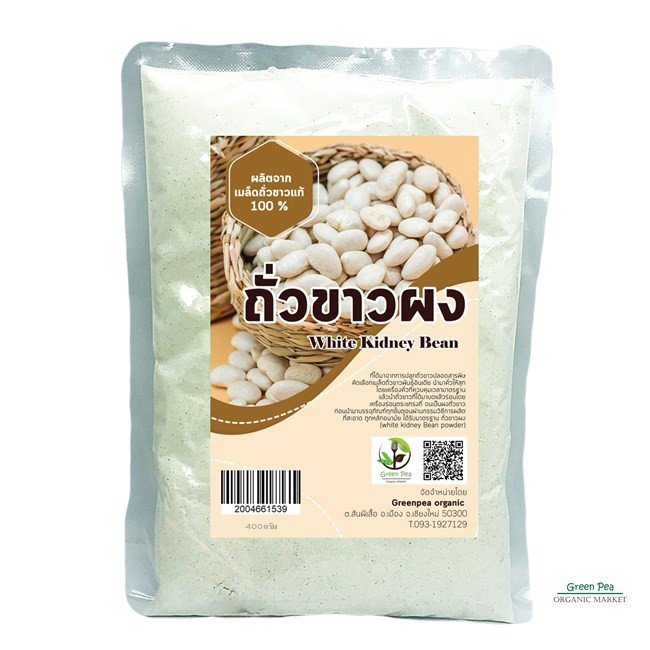 ถั่วขาว อินทรีย์ บดผง 400 g. White Kidney Bean Greenpea ปราศจากสารเคมี