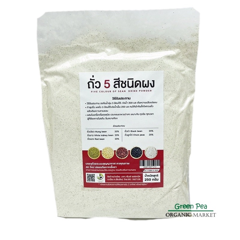 Greenpea ถั่ว5สี อบบด 250กรัม จากถั่วอินทรีย์ Five colour of bean drink powder