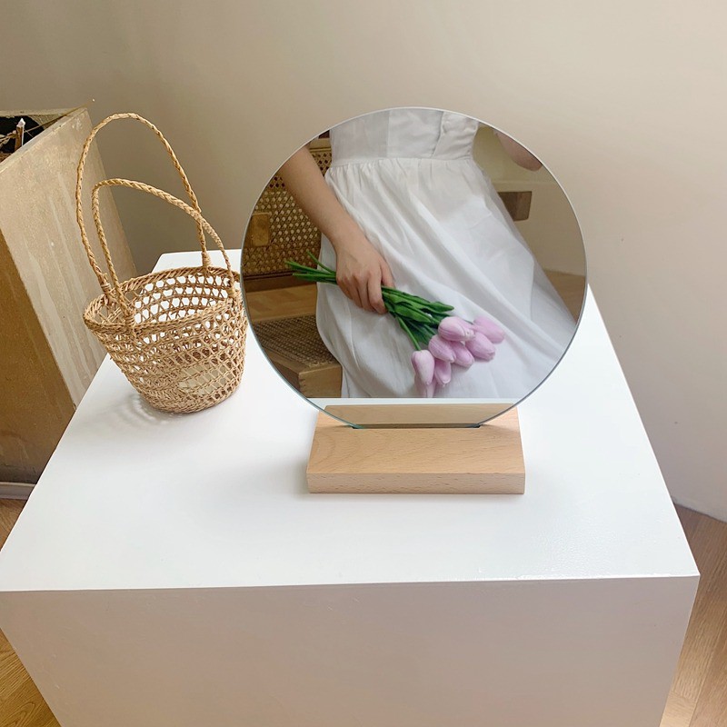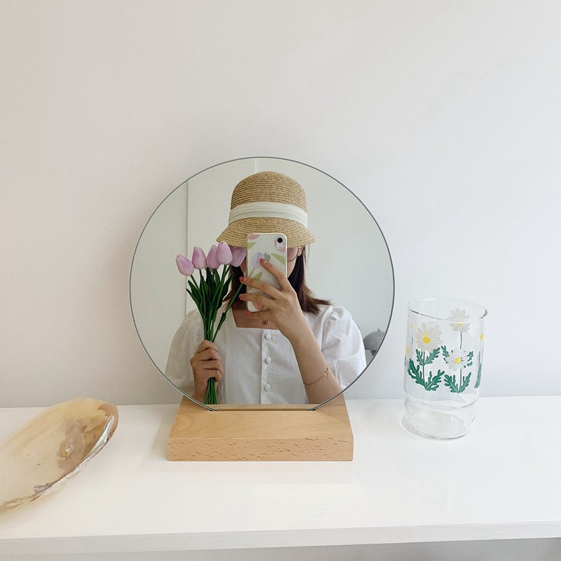 *พร้อมส่ง【ฟรีฐานไม้】กระจกเกาหลี Bubble [장식용] ไอเท็มแต่งห้องยอดฮิต I กระจกกลม กระจกแต่งหน้า I