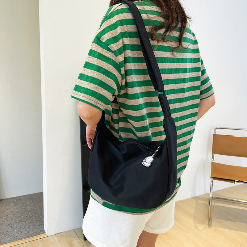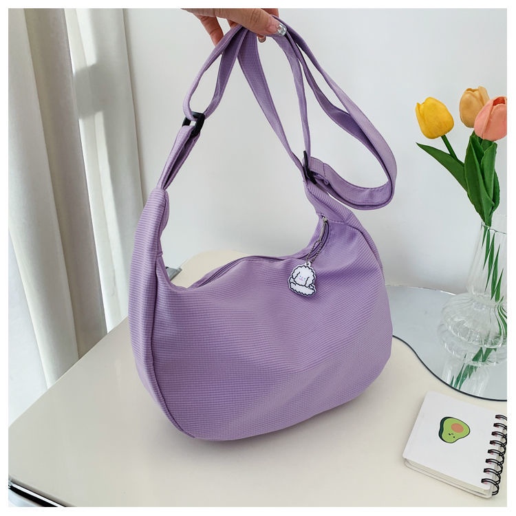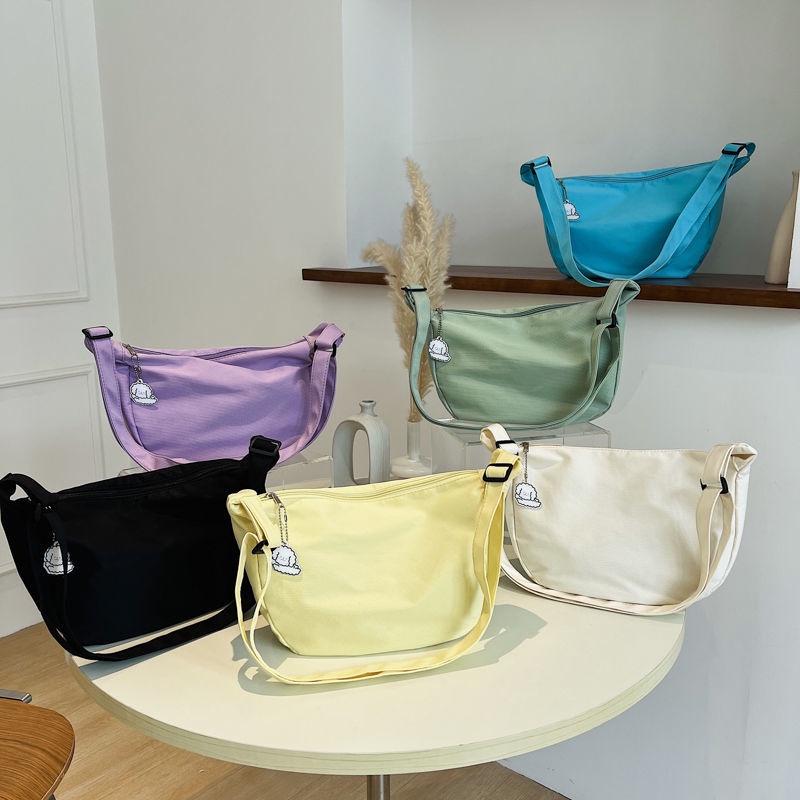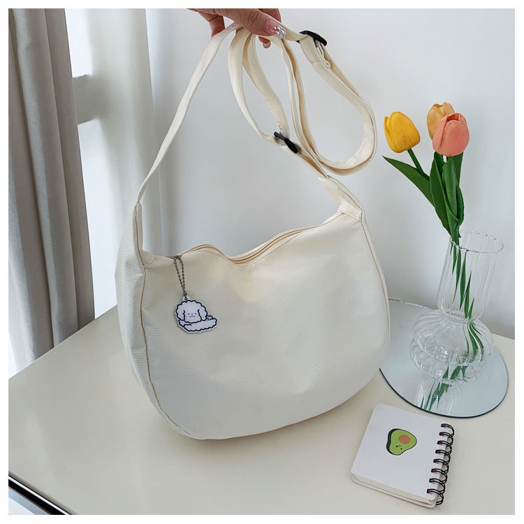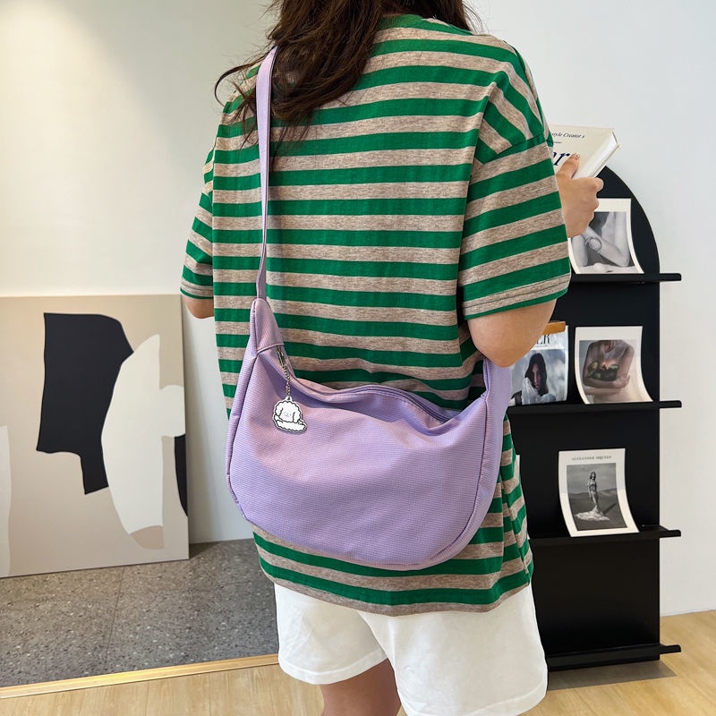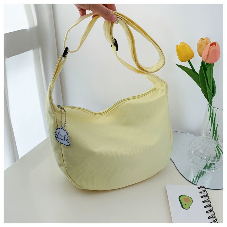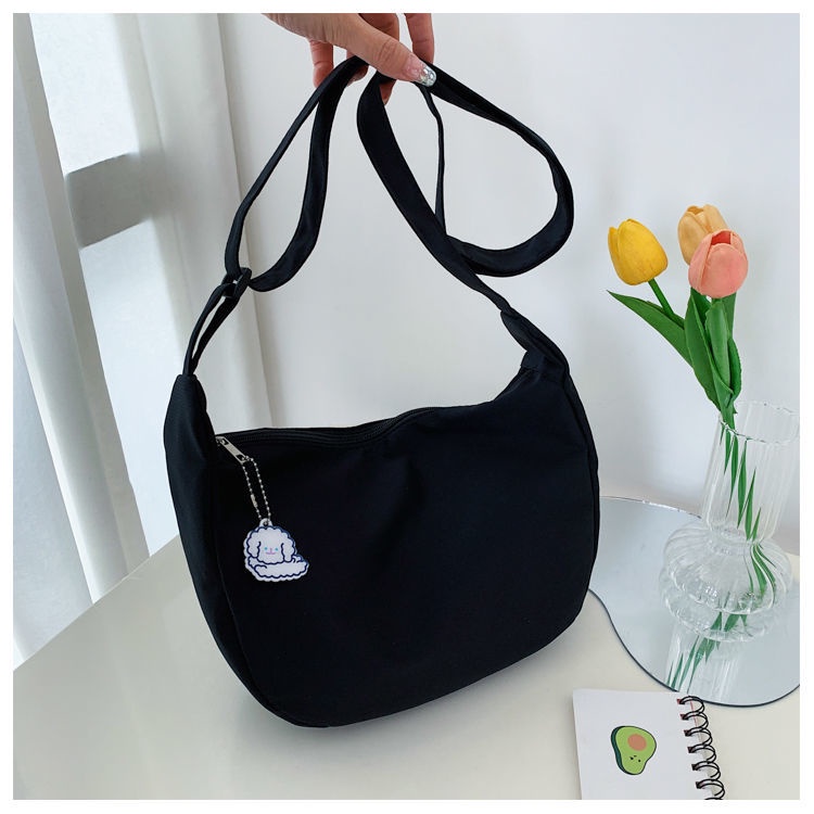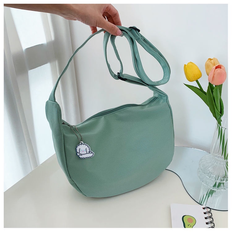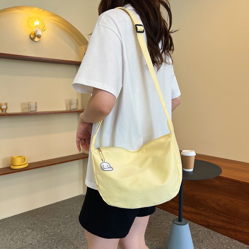 กระเป๋าสะพายไหล่ ผ้าแคนวาส สีพื้น แบบเรียบง่าย สไตล์ญี่ปุ่น แฟชั่นฮาราจูกุ สําหรับผู้หญิง และนักเรียน