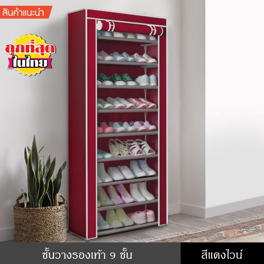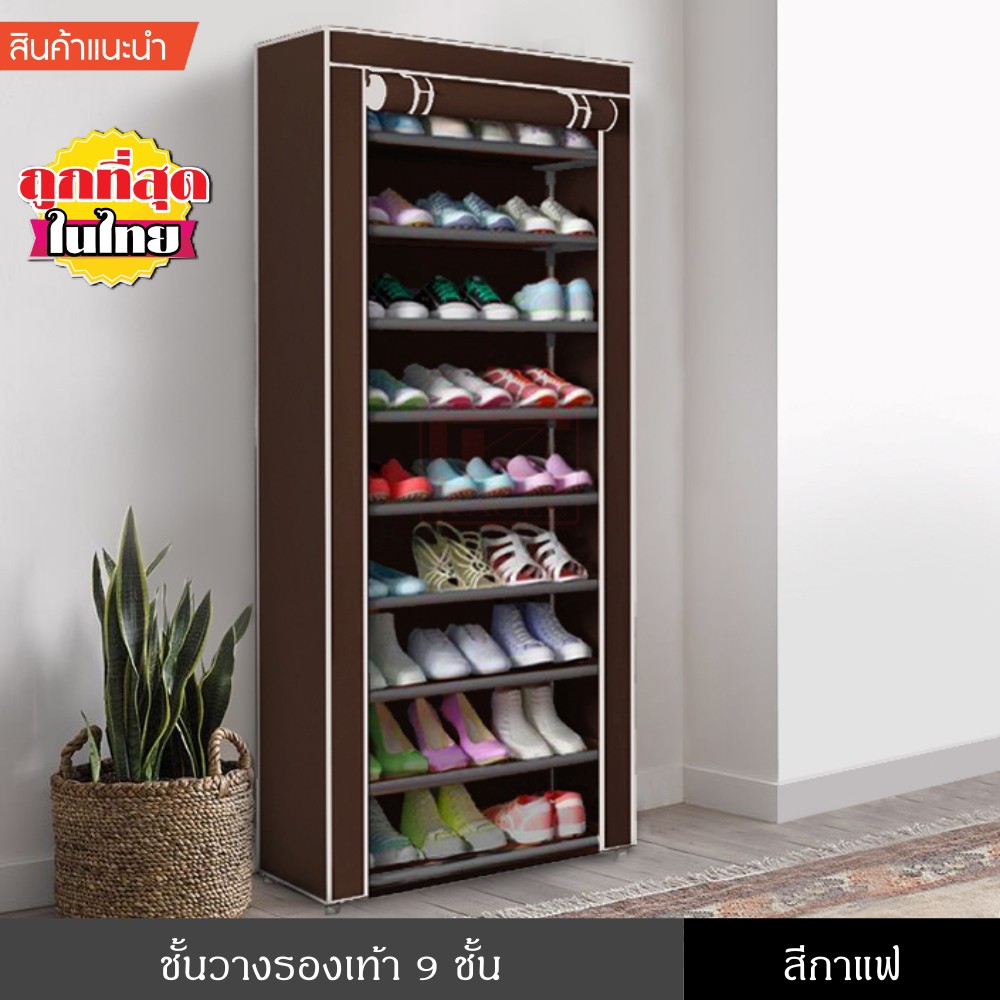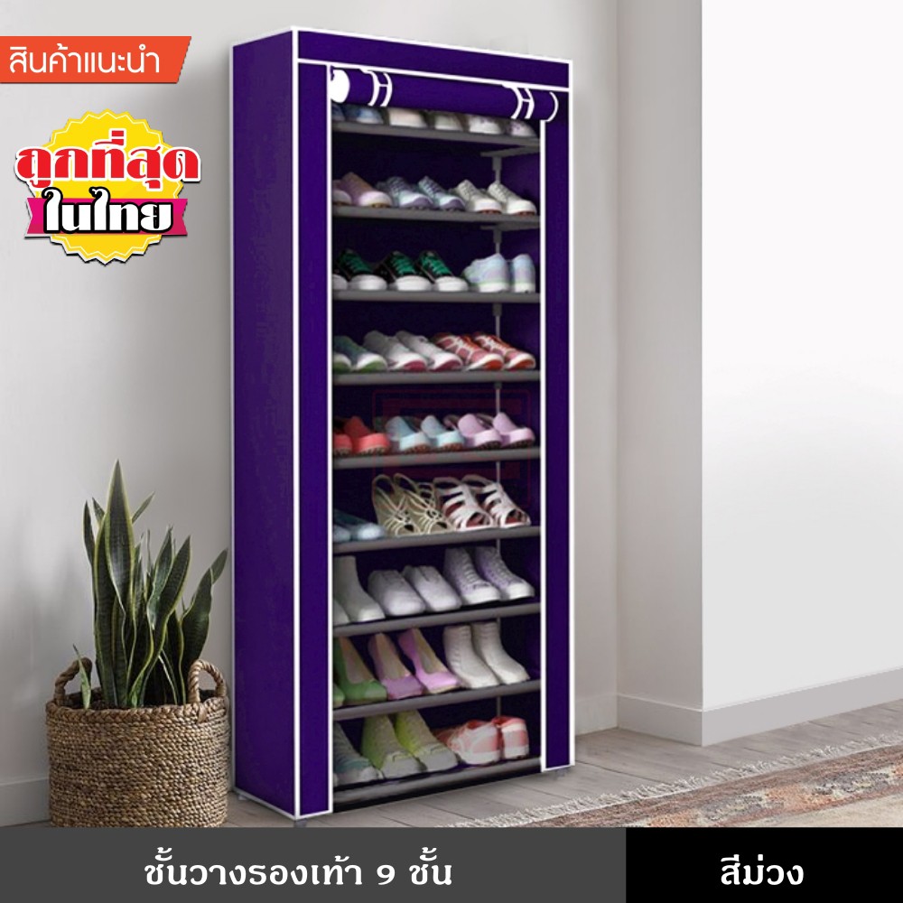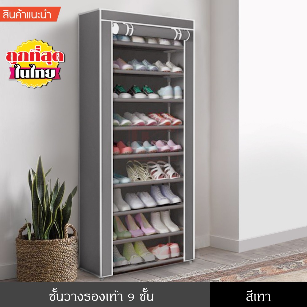 ชั้นวางรองเท้า 9 ชั้น วางของสิ่งของ กันน้ำ กันฝุ่น เคลื่อนย้ายสะดวก ผ้า Nonwoven