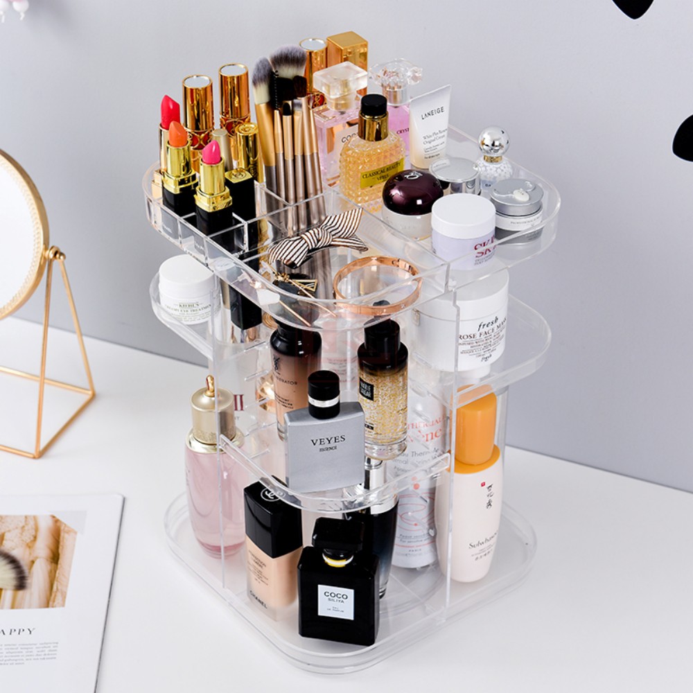 ชั้นวางเครื่องสำอาง DIY หมุน 360 องศา มี 3 สี 2 แบบ จุของได้จำนวนมาก ประหยัดพื้นที่บนโต๊ะ