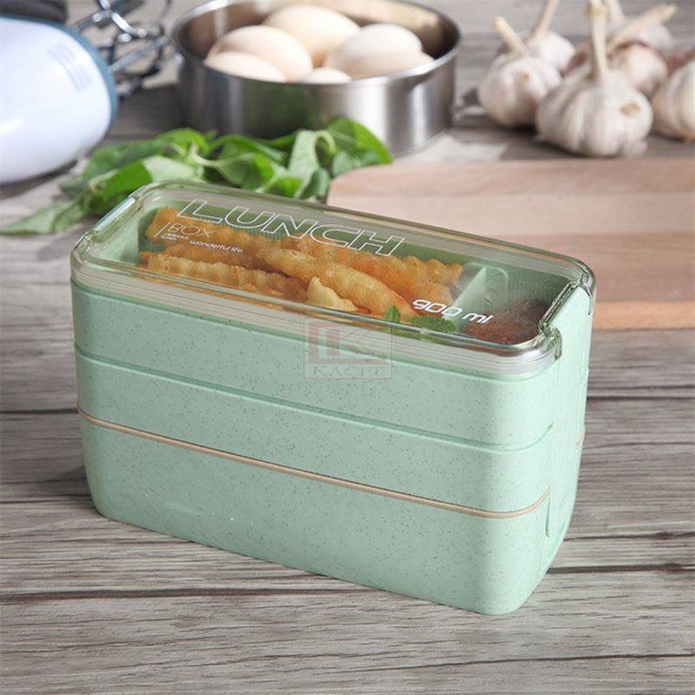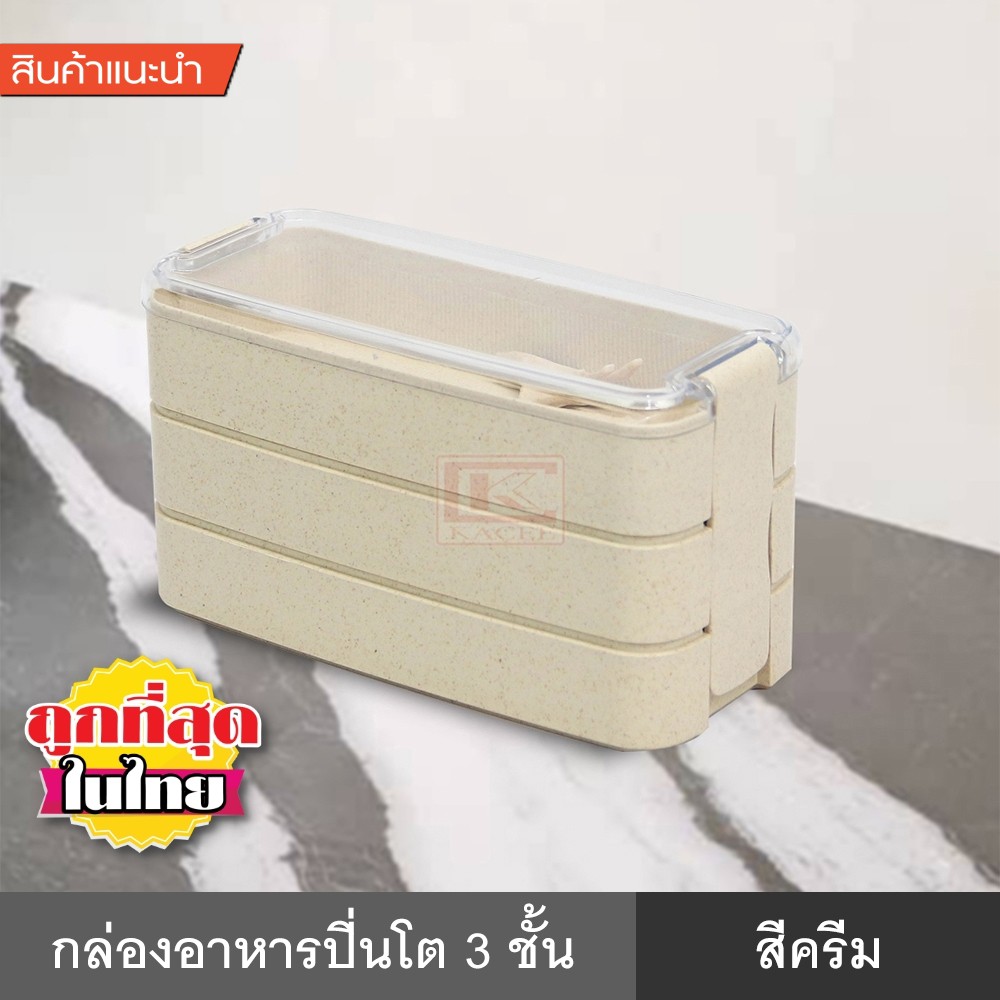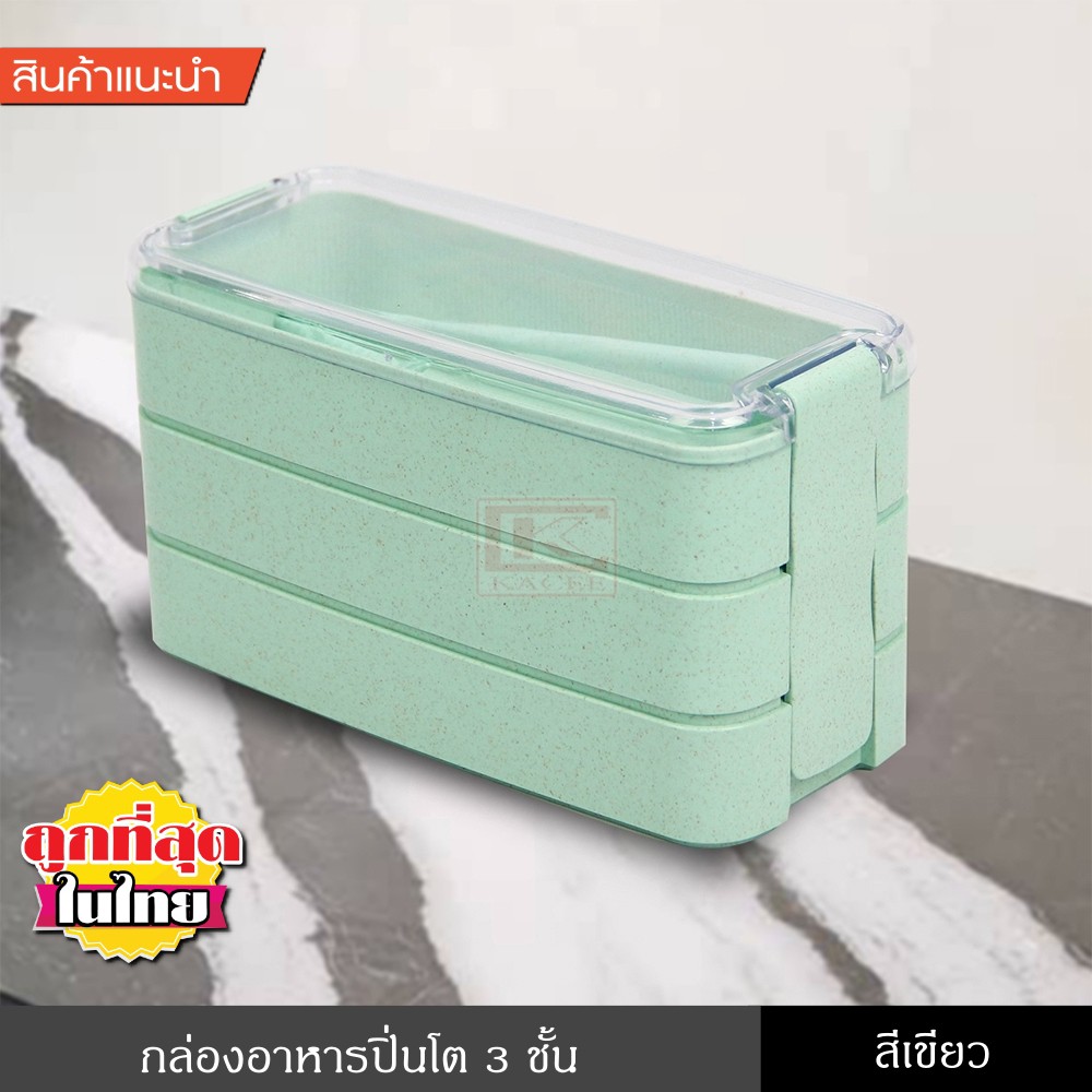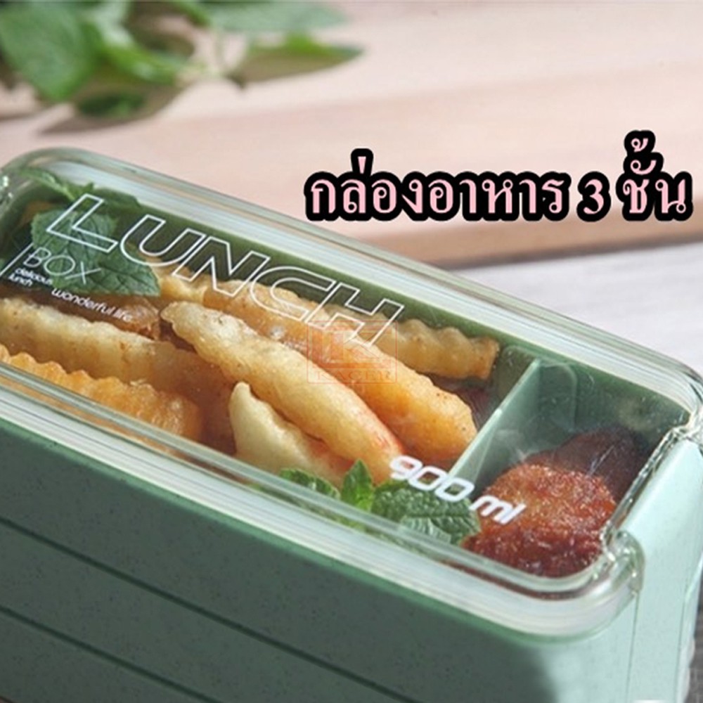 กล่อง กล่องอาหาร ปิ่นโต 3 ชั้น ใส่อาหาร พร้อมช้อนส้อม ช่องแบ่งสัดส่วนปรับได้ กล่องใส่อาหาร กล่องข้าว พกพา อาหารกลางวัน