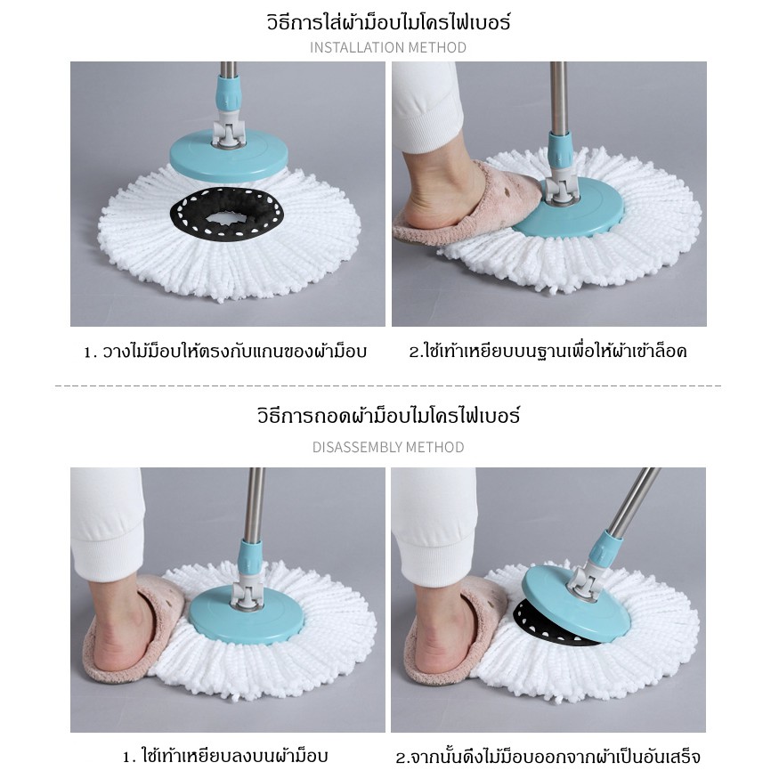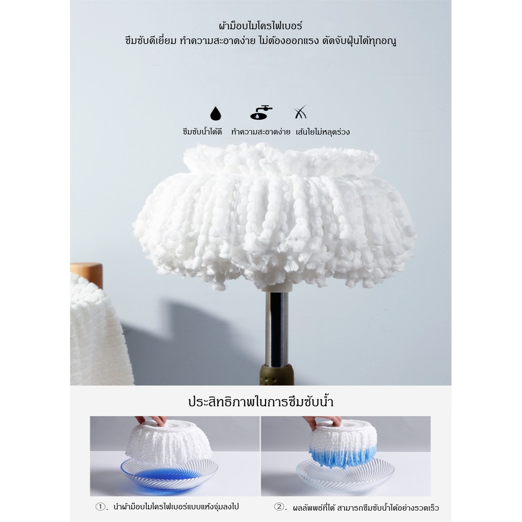 ผ้าม็อบไมโครไฟเบอร์ แพ็ค 2 ผืน ถูพื้น อะไหล่ไม้ม็อบ รีฟิล