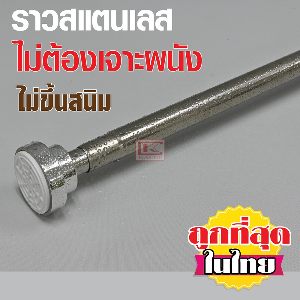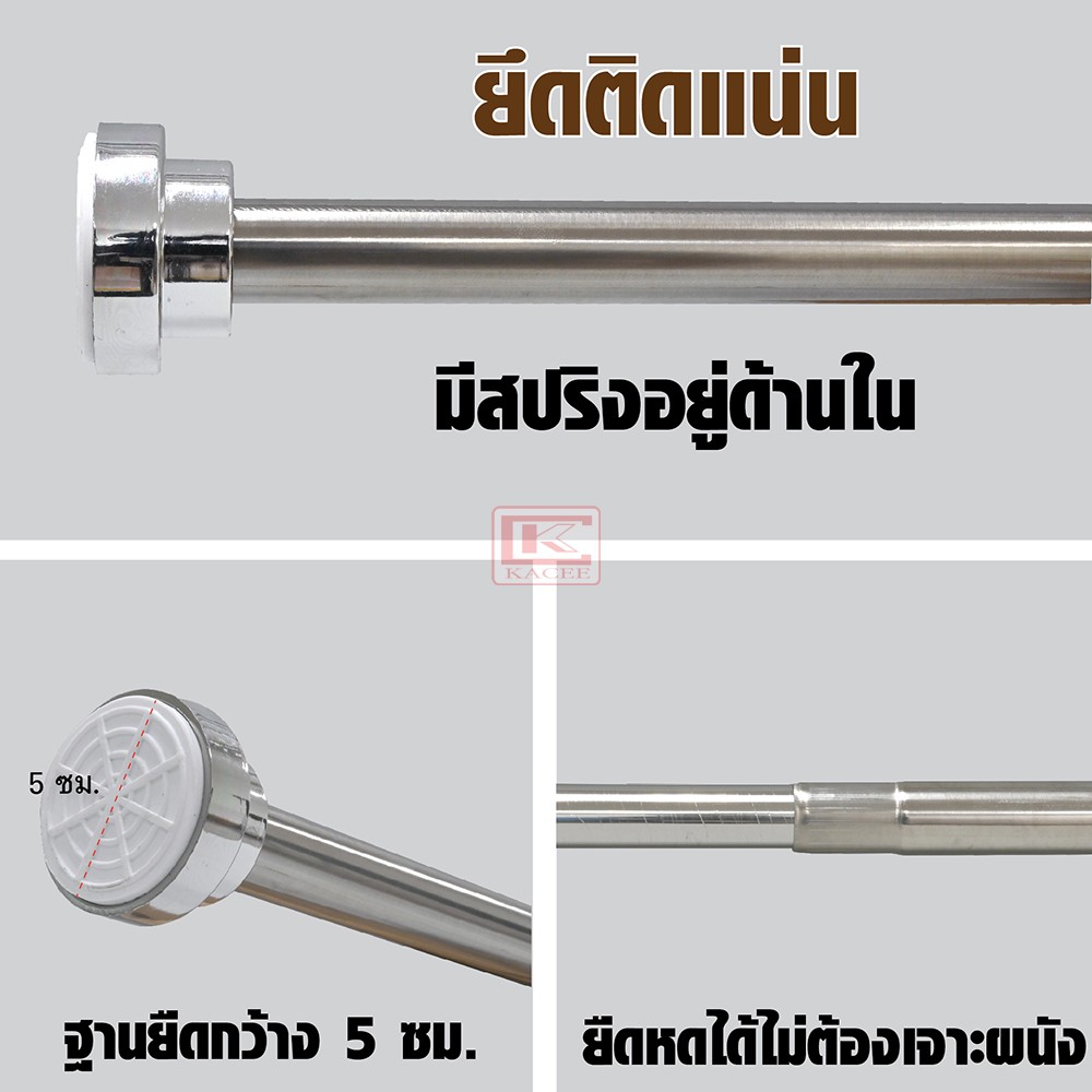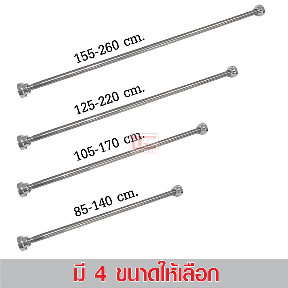 ราวสแตนเลส 304 ไร้สนิม ราวม่านห้องน้ำ ปรับขนาดได้ตั้งแต่ 85-260 ซม. ยืดหดได้ไม่ต้องเจาะผนัง