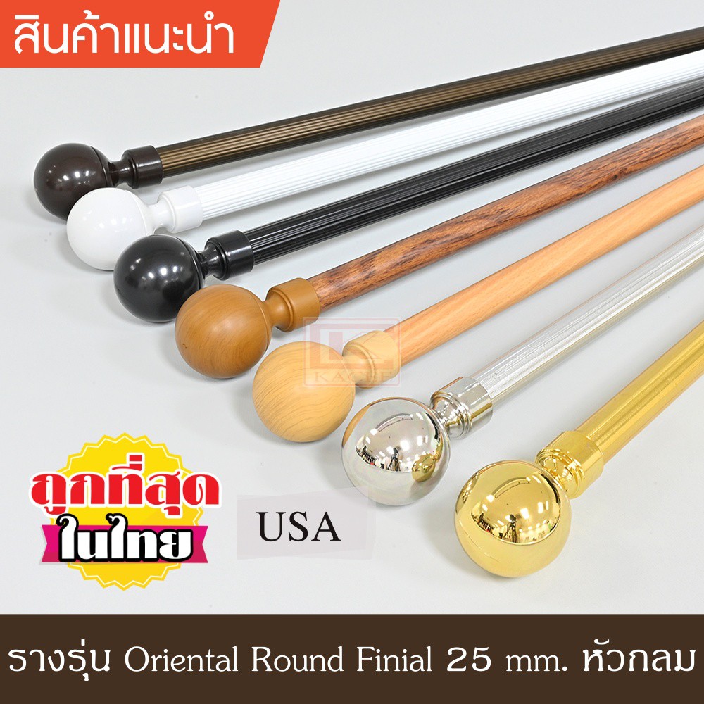 (สำหรับม่านชุดเล็กขนาด 1.00-2.00 ม.) KACEE รางอะลูมิเนียม 25 มม.หัวกลม