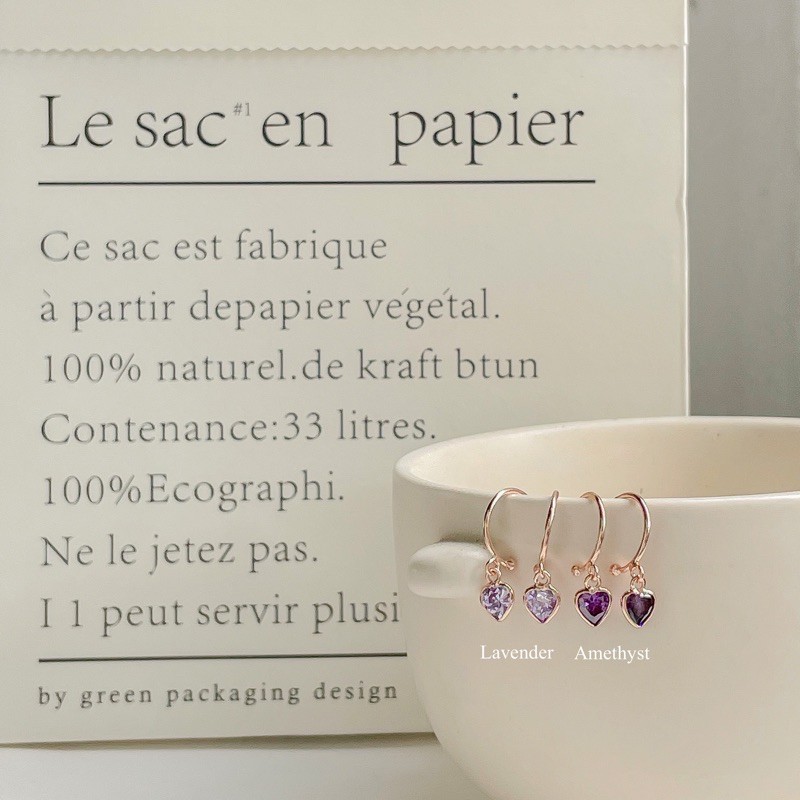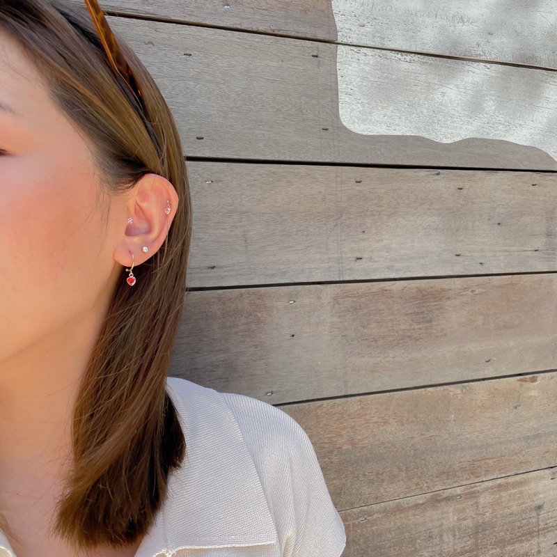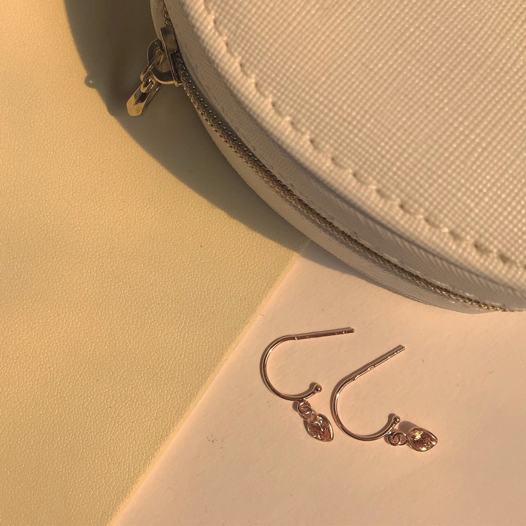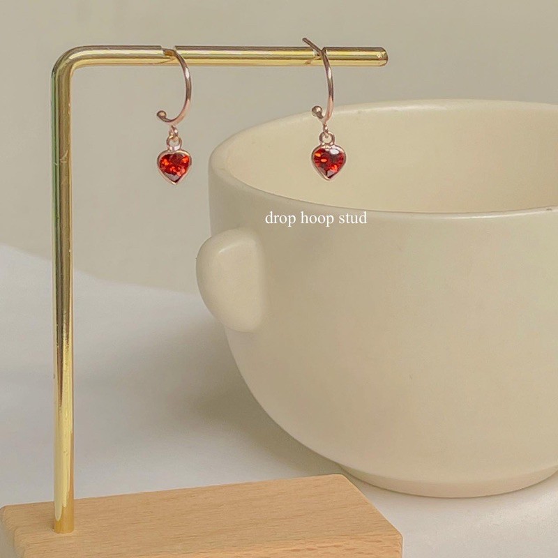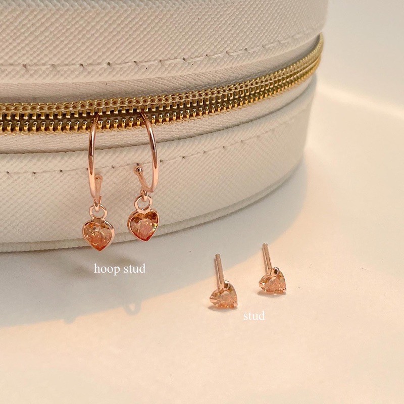 SissyJewelry // ต่างหูเงินแท้ รุ่น heart drop hoop stud ประดับพลอยหัวใจ 5mm (rosegold-plated)