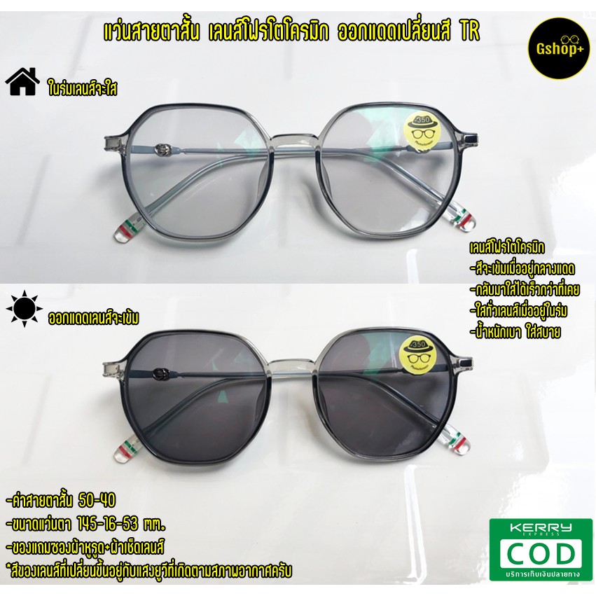 แว่นสายตาสั้น/ยาว กรองแสง เลนส์มัลติโค้ด ออกแดดเปลี่ยนสี TR0367B