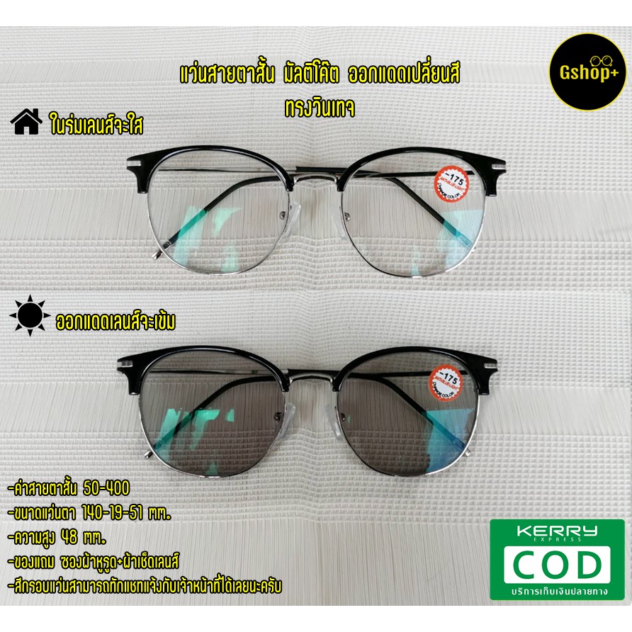 แว่นสายตาสั้น เลนส์ออโต้ มัลติโค๊ด ออกแดดเปลี่ยนสี ทรงวินเทจ3391B