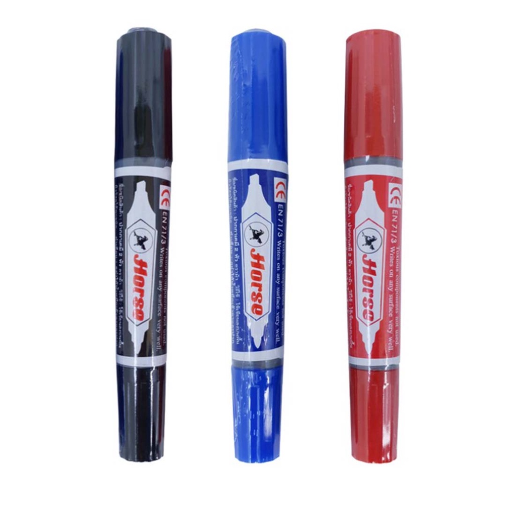 ปากกาเคมี 2 หัว ตราม้า (น้ำเงิน/แดง/ดำ)
