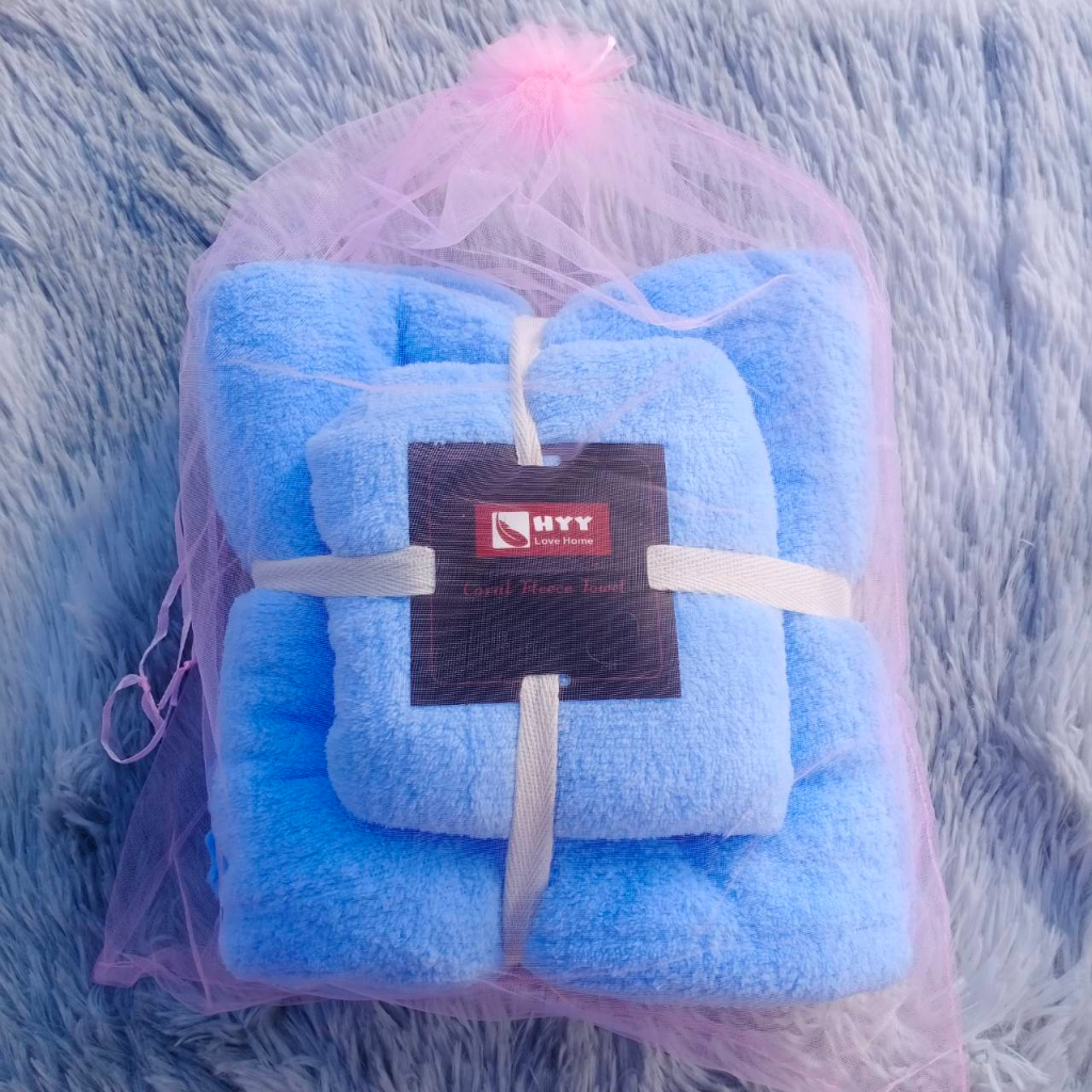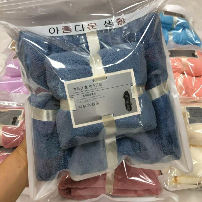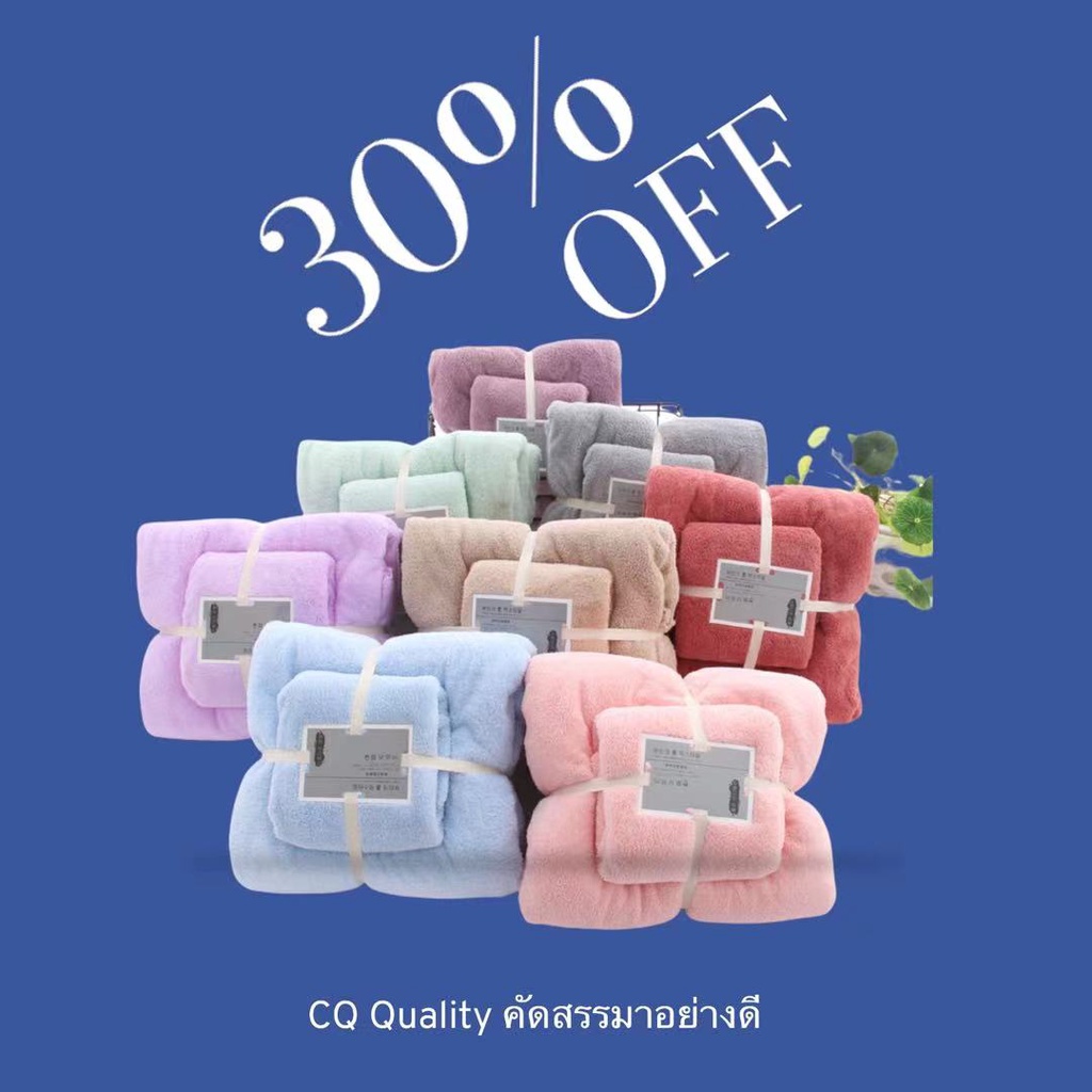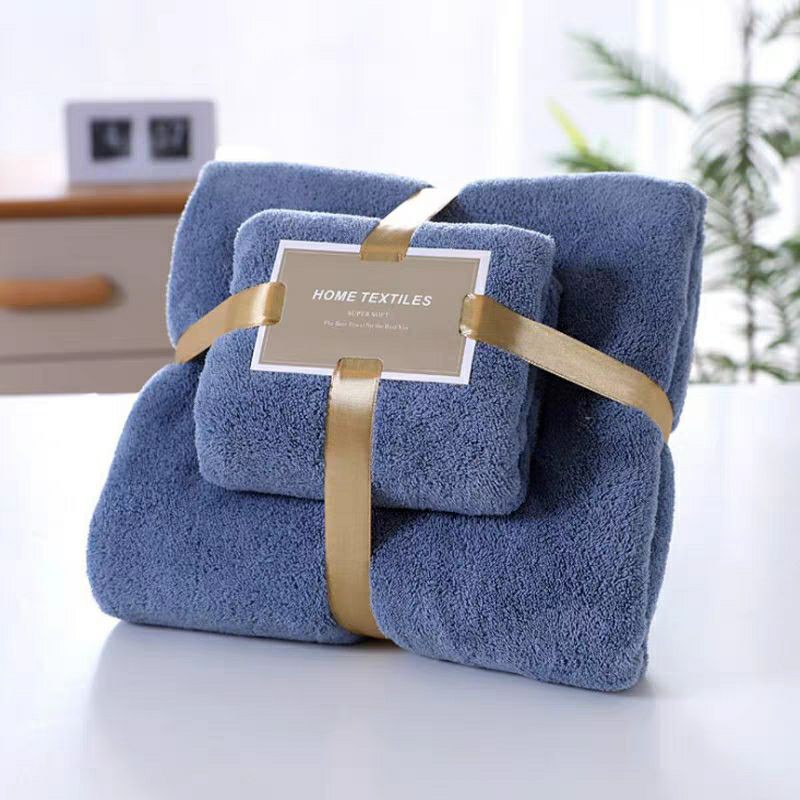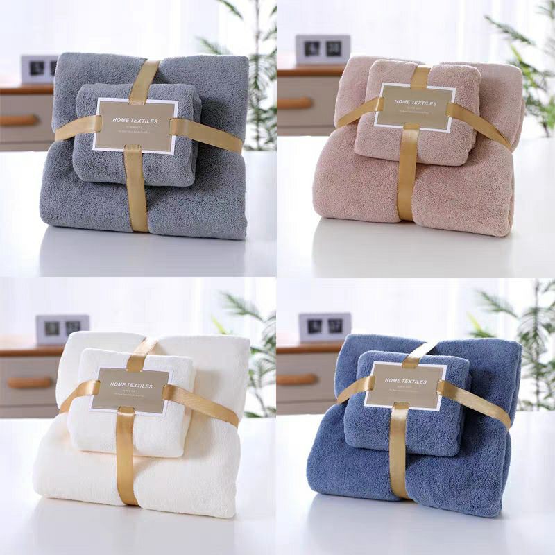เซตผ้าเช็ดตัวขนเป็ด [ผ้าเช็ดตัว+ผ้าเช็ดผม] รุ่นถุงซิปใสผ้าเช็ดตัวขนเป็ดเรียบหรู