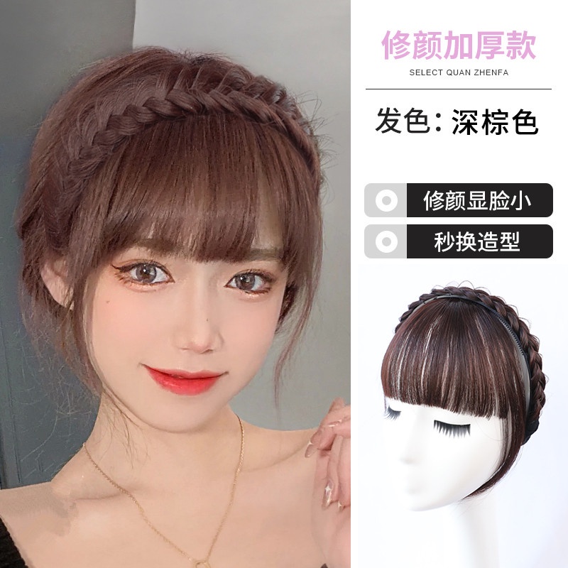 แฟชั ่ นสาววิกผมแถบคาดศีรษะกับ Bangs ผม Hoop Bangs วิกผม Braid ผม Bangs Hairband Hair Extensions