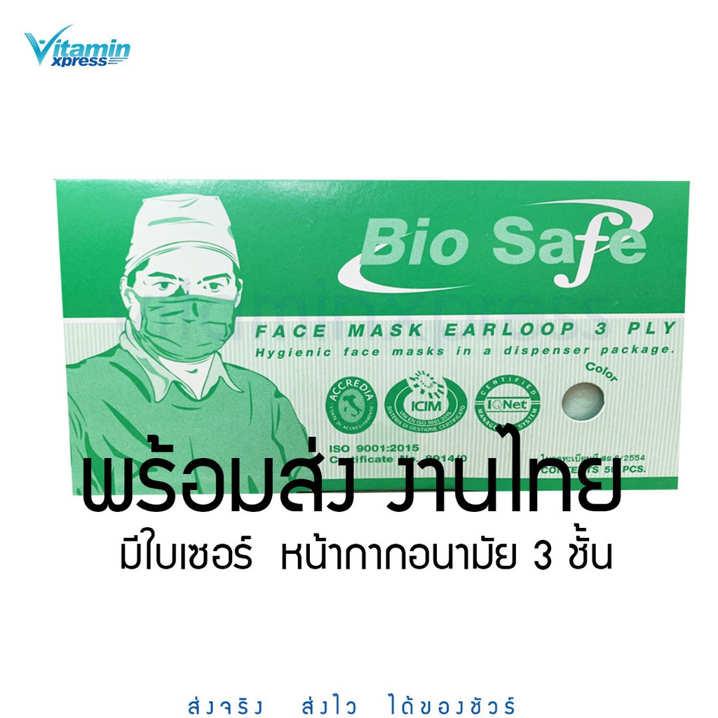 Biosafe Bio safe หน้ากากอนามัย สีเขียว 3 ชั้น mask แมสก์ เเมสก์ Medimask 1 กล่อง 50 ชิ้น เกรด รพ