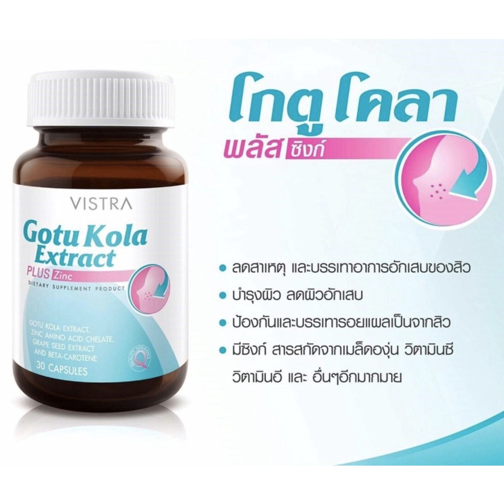 Vistra set ป้องกันสิว Zinc 45s + Gotu kola 30s ซิงค์ โกตู ลดรอยแดง รอยแผลจากสิว บรรเทาสิวอักเสบ สังกะสี วิสทร้า วิสตร้า