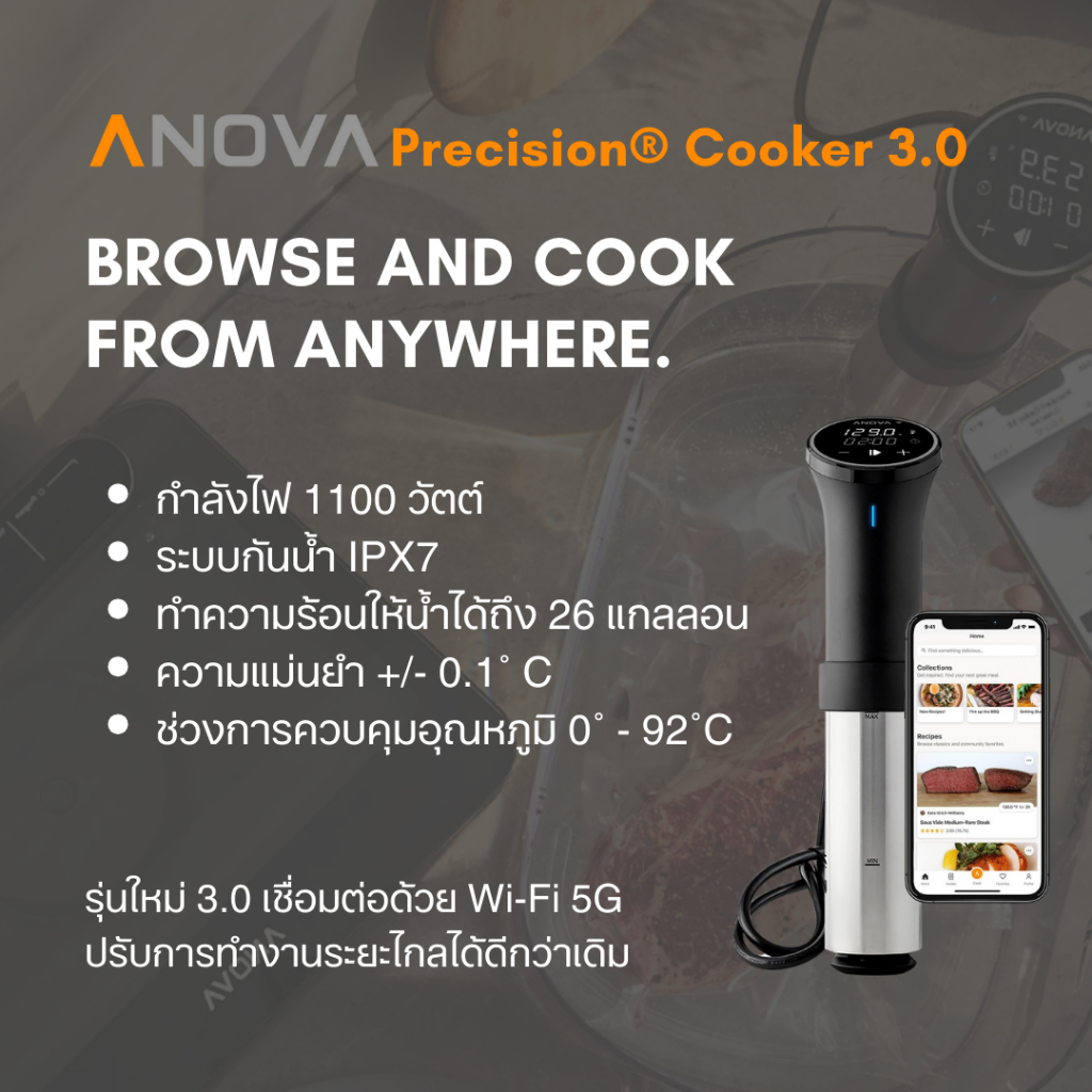 Anova Precision® Cooker Sous Vide 3.0 และ PRO - 220V ไฟไทย ปลั๊ก UK ประกัน 1 ปี ในไทย เครื่องซูวี่ จากอเมริกา