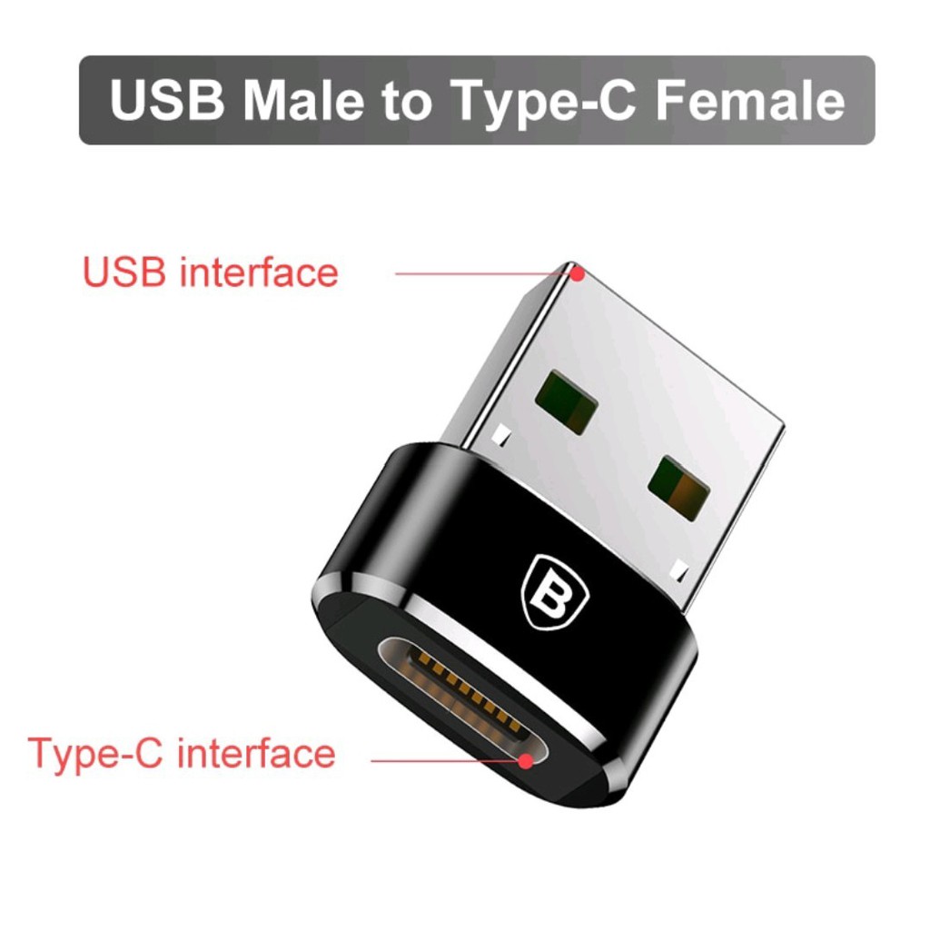 Baseus อะแดปเตอร์ USB Male to Type-C Female OTG 2.4A / แท็บเล็ต / โน๊ตบุ๊ค / พาวเวอร์แบงค์