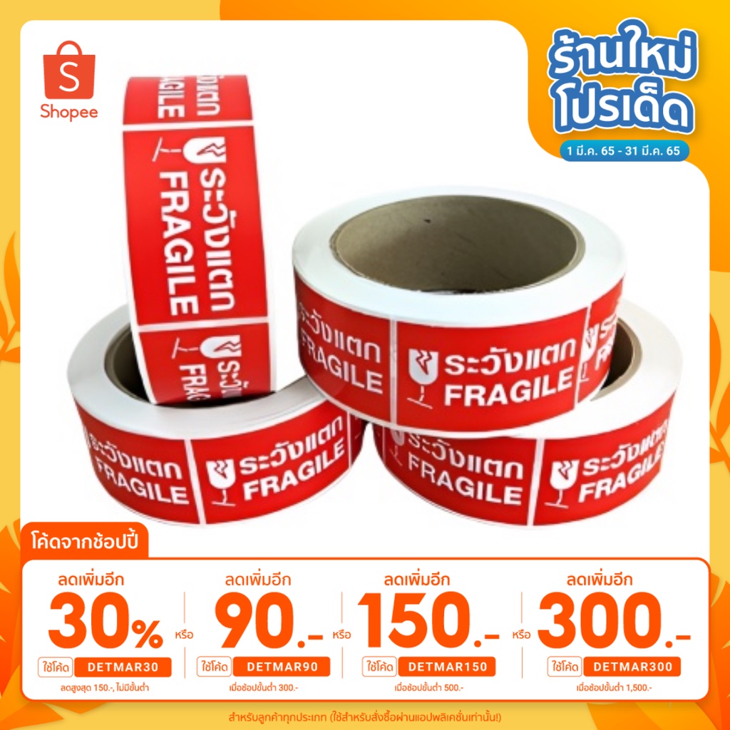สติ๊กเกอร์ ระวังแตก Fragile ดวงละ 0.13 สตางค์ ขนาด 4.5*6.5 ซม. จำนวน 50/100/500 ดวง