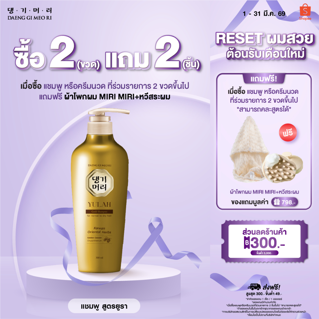 [ซื้อ2ขวดแถม2ชิ้น][Shampoo] DGMR - แทงกีโมรี YULAH GOLD แชมพูสระผม สูตรยูรา โกลด์ ผมสวยเงางาม มีออร่า ขนาด 300 ml.
