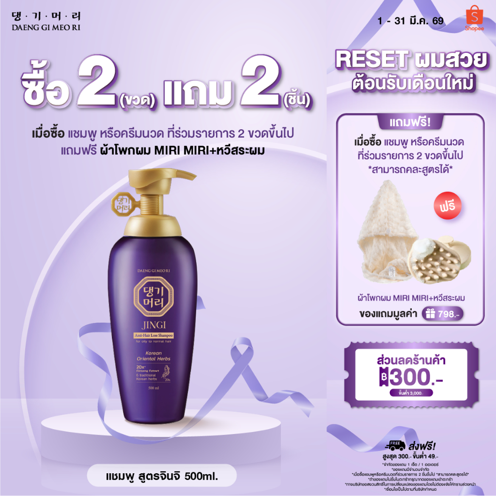 [ซื้อ2ขวดแถม2ชิ้น][Shampoo] DGMR - แทงกีโมรี JINGI Anti-Hair Loss แชมพูสระผมสูตรจินจิ ลดผมร่วงเพิ่มผมหนา ขนาด 500 ml.