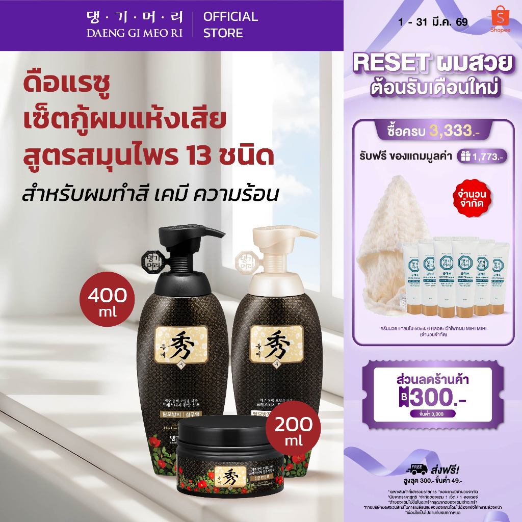 [Complete Set] DAENG GI MEO RI แชมพูลดผมร่วง แทงกีโมรี สูตร ดือแรซู DLAESOO Shampoo+Treatment+Intensive Nourishing Pack