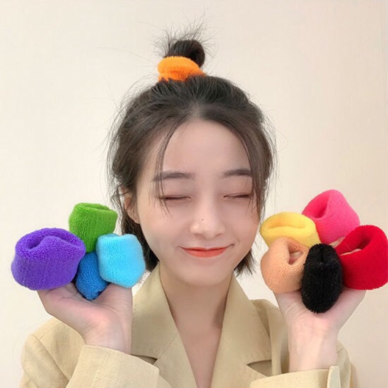 ยางมัดผมไหมพรม โดนัทไหมพรม ยางรัดผมเส้นใหญ่ ยืดหยุ่น มัดผมดีมาก สีสดใส