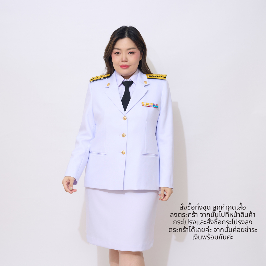 (สินค้า1ตัว) ชุดปกติขาวหญิง เสื้อสูทปกติขาวหญิง โอโม่ / เครื่องแบบข้าราชการปกติขาวหญิง (สินค้าเสื้อ1ตัว)