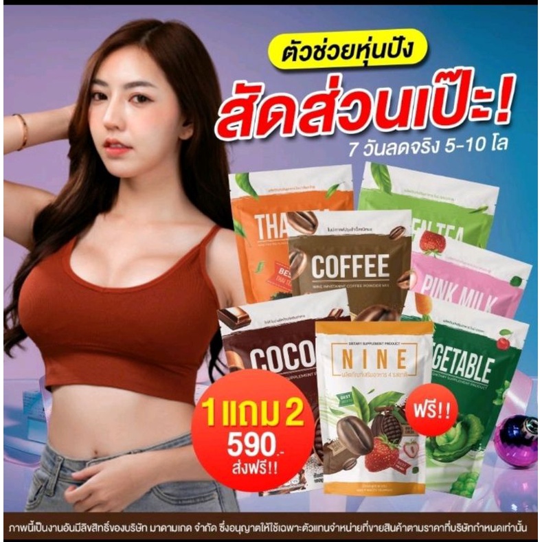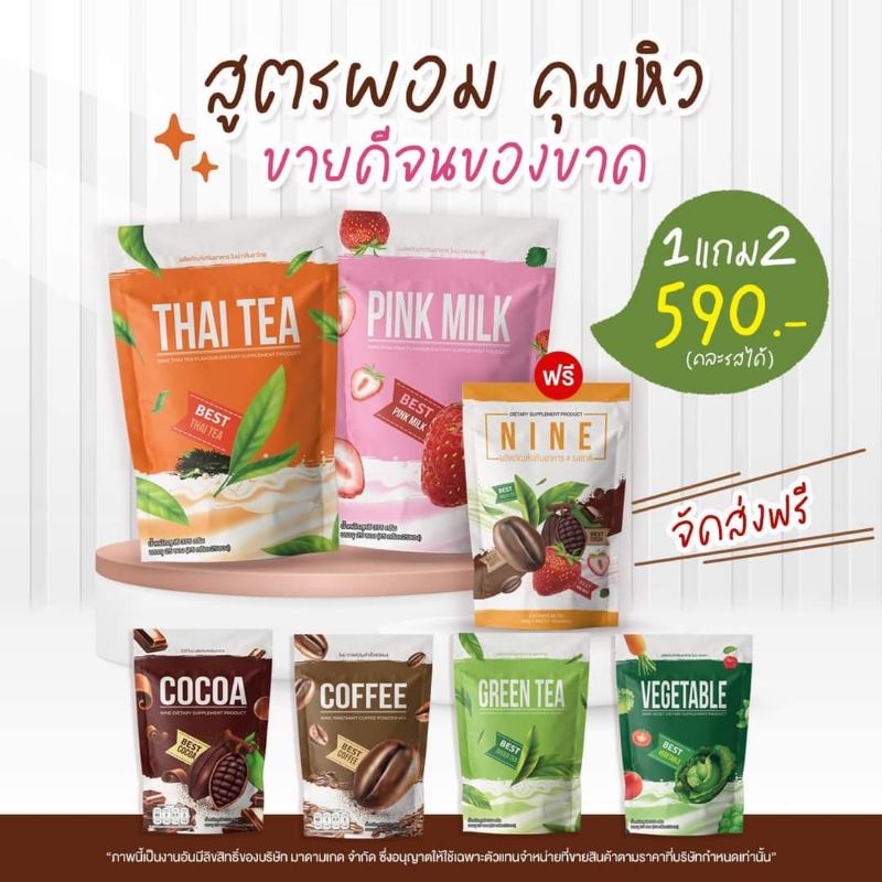 🔥ส่งฟรี แบบห่อ แบบถัง ไนน์Cocoa กาแฟ โกโก้ ชาเขียว นมชมพู ชาไทย น้ำผัก ไนน์ถัง ลดน้ำหนัก ไฟเบอร์ ดีทอกซ์
