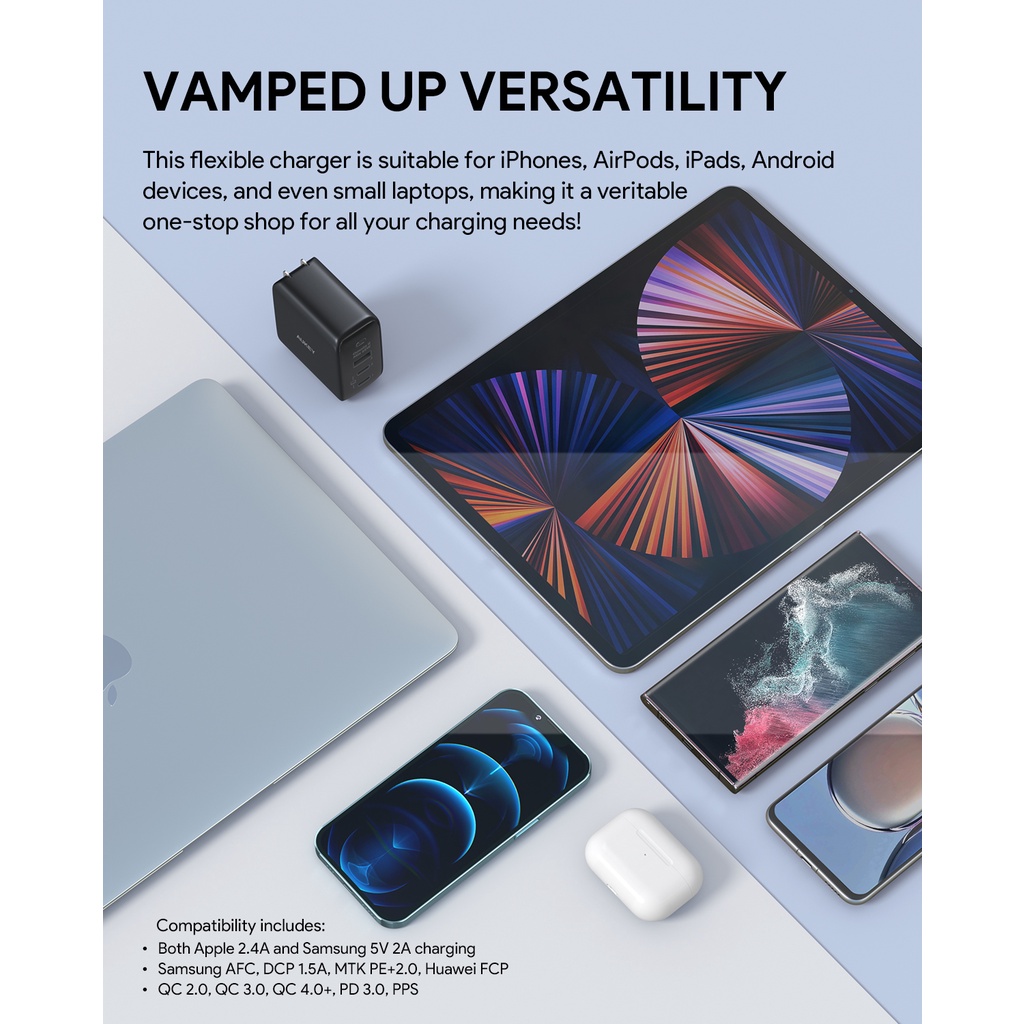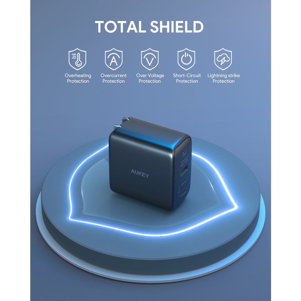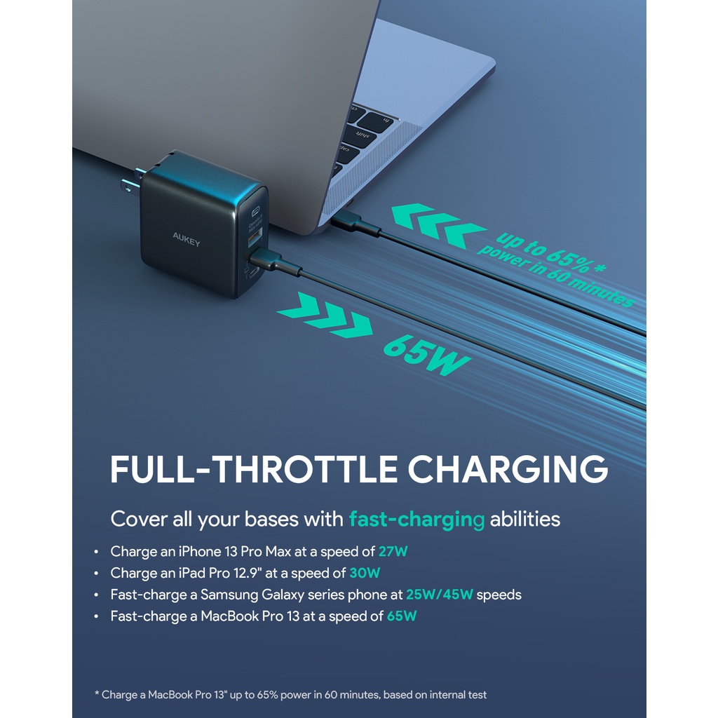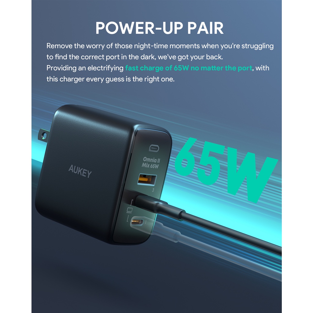 AUKEY PA-B6T หัวชาร์จเร็ว 65W OmniaII Series With GaN Power Tech สำหรับไอโฟน ,Android เทคโนโลยี PPS, PD รุ่น PA-B6T