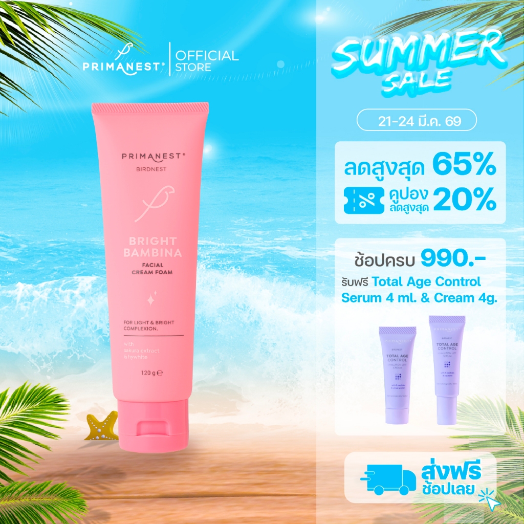 PrimaNest Birdnest Bright Bambina Facial Cream Foam 120 g พรีมาเนสท์ ไบรท์ เเบมบิน่า เฟเชี่ยล ครีม โฟม