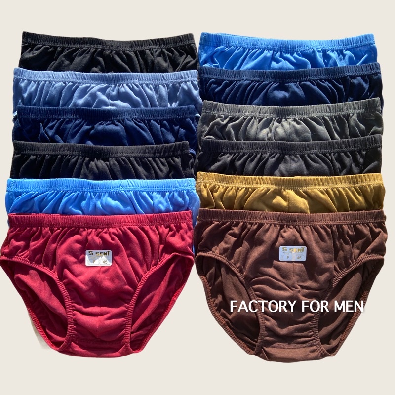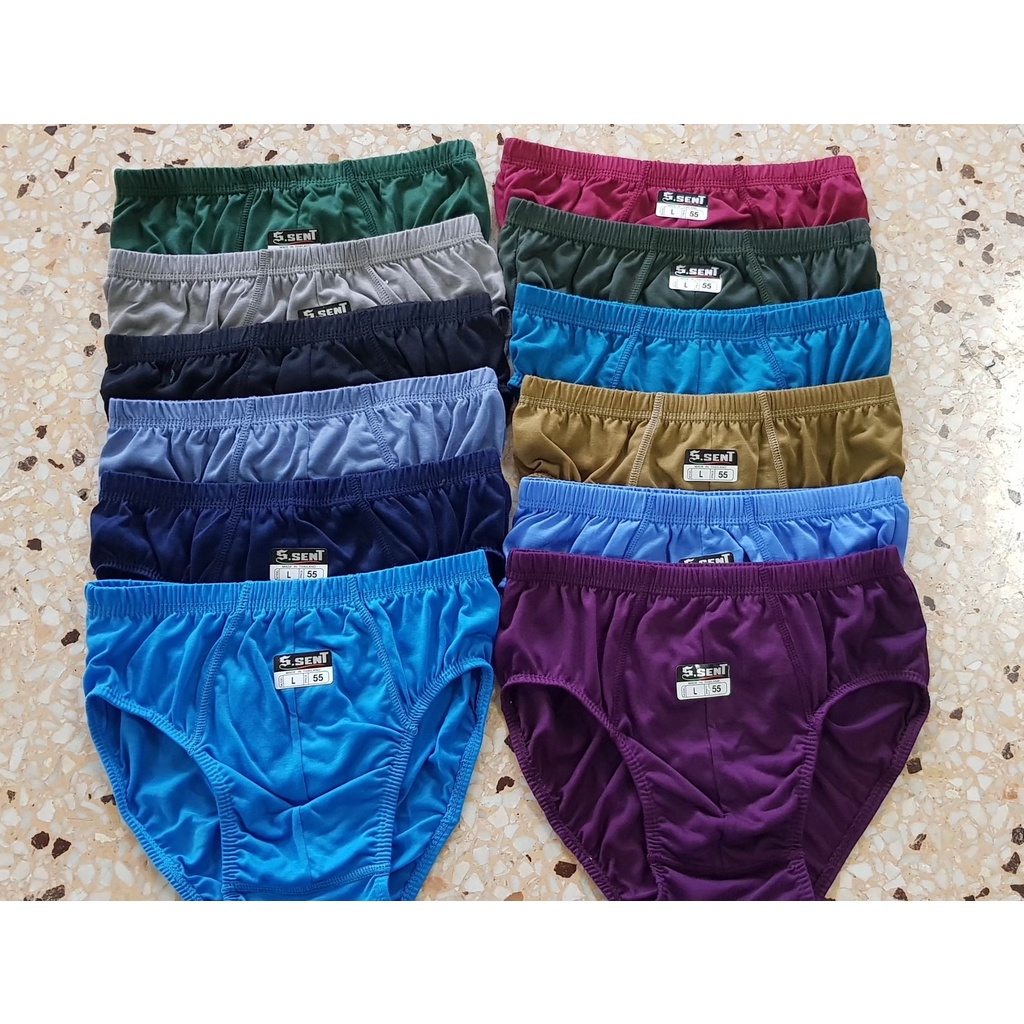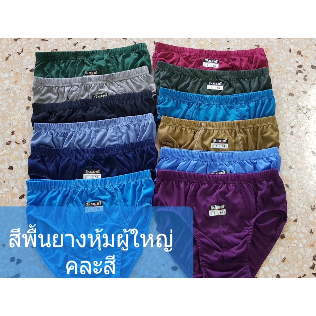 กางเกงในชาย (ยกโหล 12 ตัว) รุ่นสีพื้นยางหุ้ม รอบเอว 24-44"
