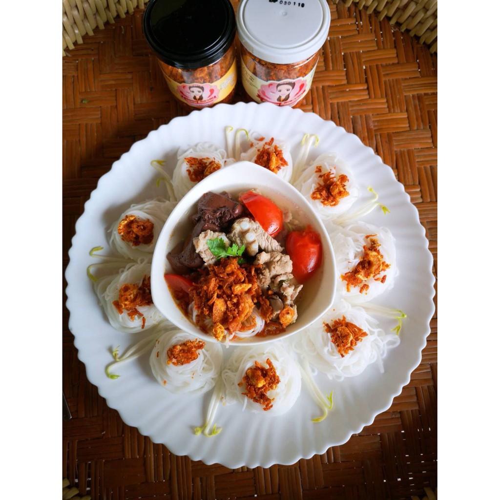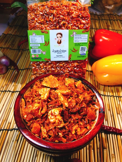น้ำพริกน้ำย้อยหมูกรอบ ขนาด 500กรัม by หมูหวาน น้ำพริกน้ำย้อย