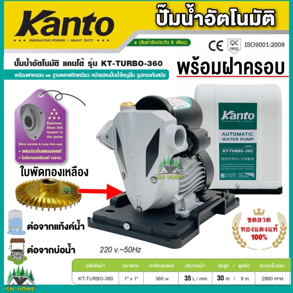 KANTO ปั๊มน้ำอัตโนมัติ รุ่น KT-TURBO-380 ,TURBO-400 ใบพัดทองเหลืองแท้ ขดลวดทองแดงแท้ ปั๊มน้ำใช้ในบ้าน ปั๊มน้ำ