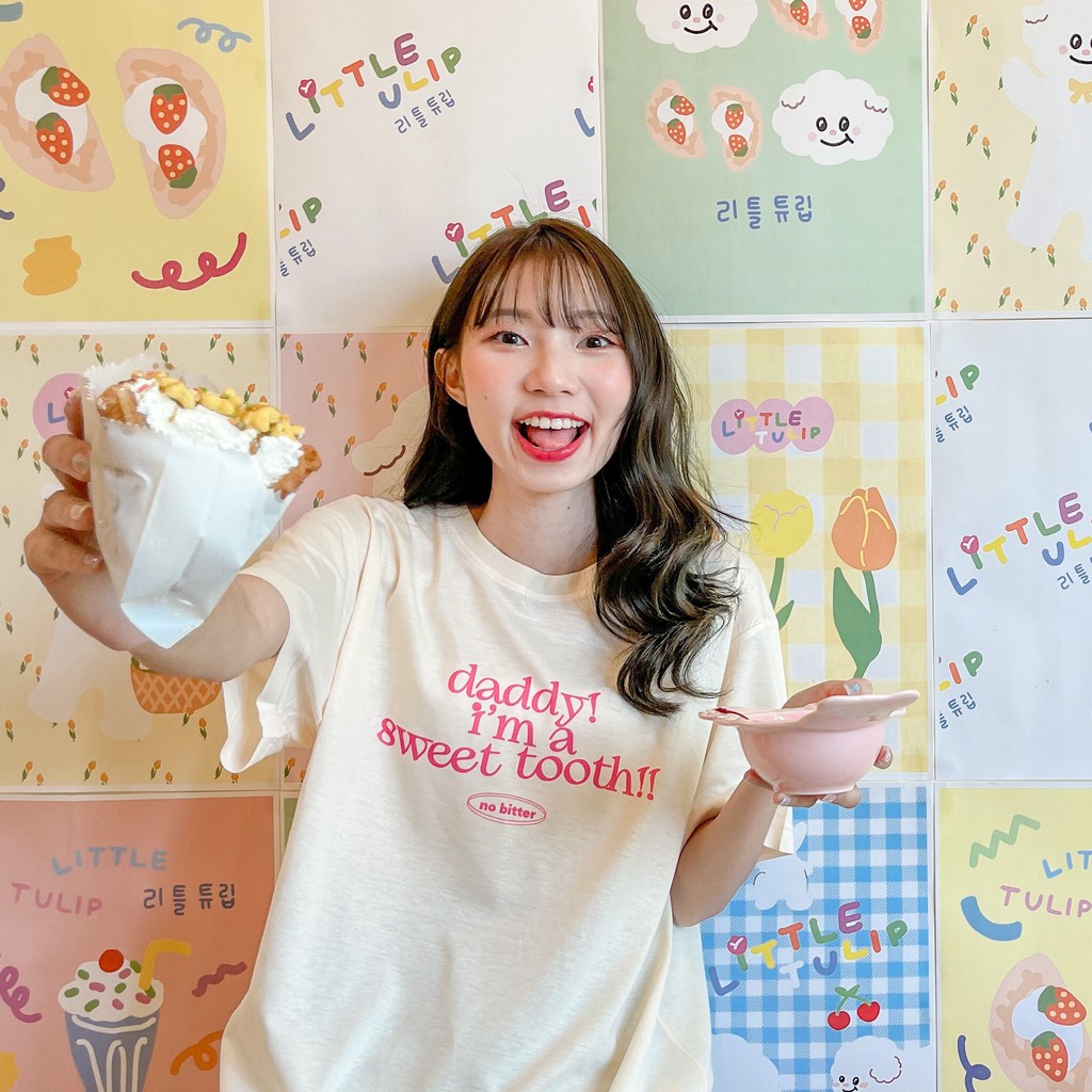 ลด30-50% กดในLive,Video เสื้อยืดลาย Croissant อก 32-50 สไตล์เกาหลี เเฟชั่นน่ารัก สีขาว คอกลม สาวอวบใส่ได้