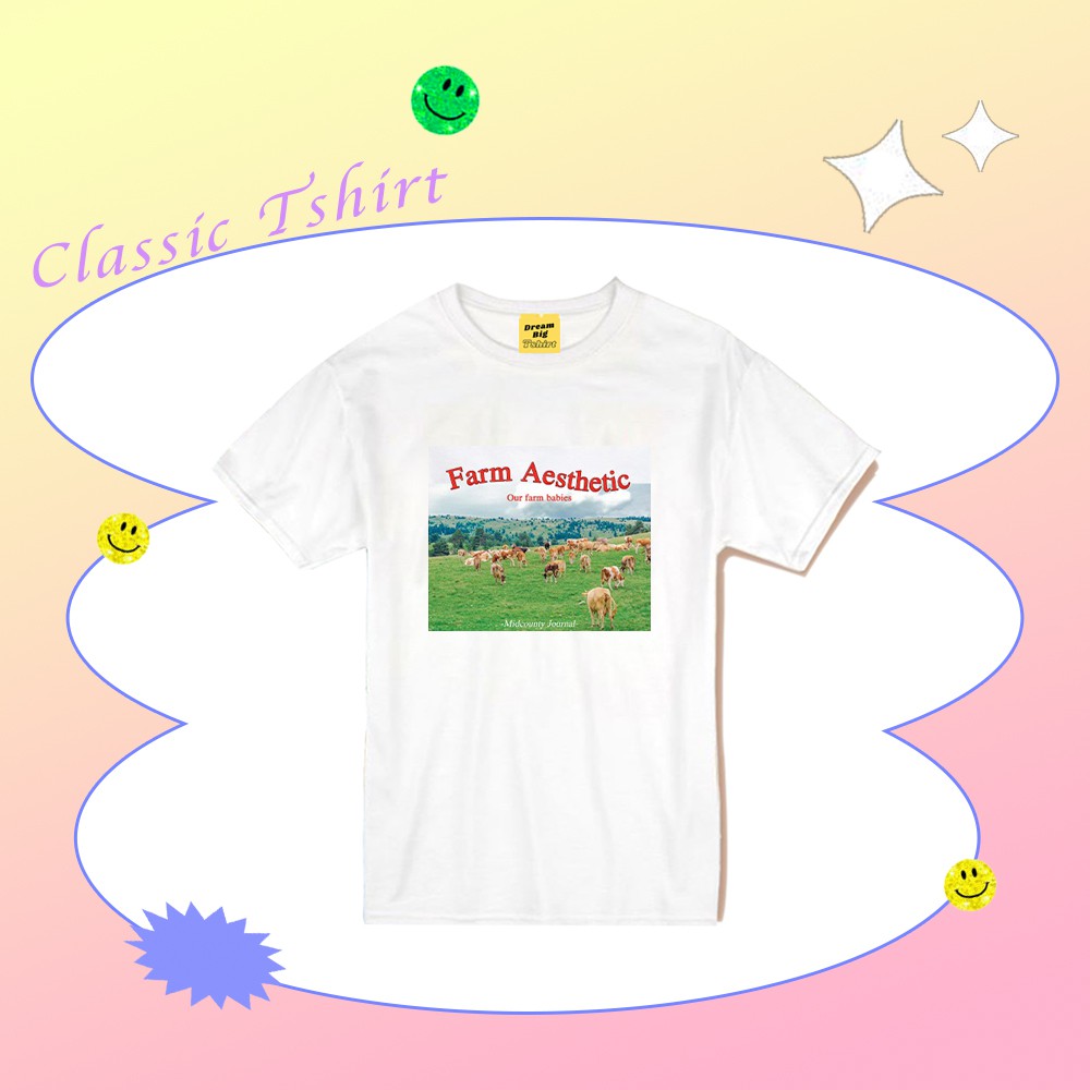 ลด30-50% กดในLive,Videoเสื้อยืด Farm girls อก 32-50 size S-XXL สไตล์เกาหลี เเฟชั่นน่ารัก สีขาว คอกลม สาวอวบใส่ได้ 32-50