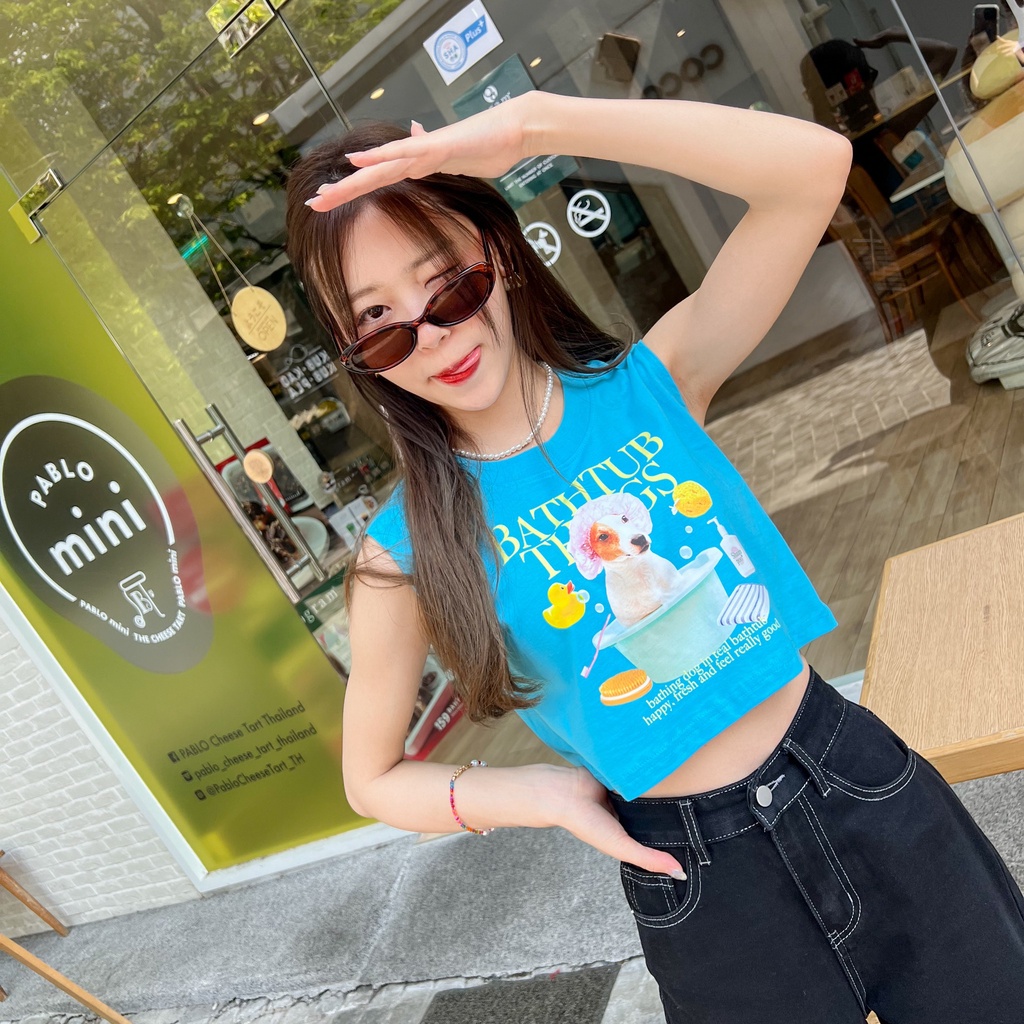 Live112# เสื้อครอปคัตตอลเเขนกุด มีหลายสี “BrownBaby” สไตล์เกาหลี Dream Big Tshirt โอเวอร์ไซน์ พร้อมส่ง คอกลม ผ้านุ่ม