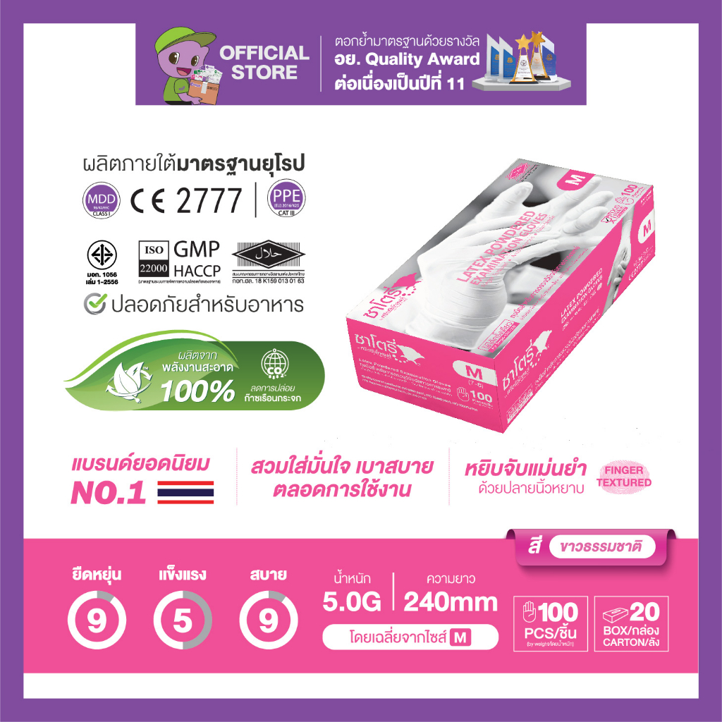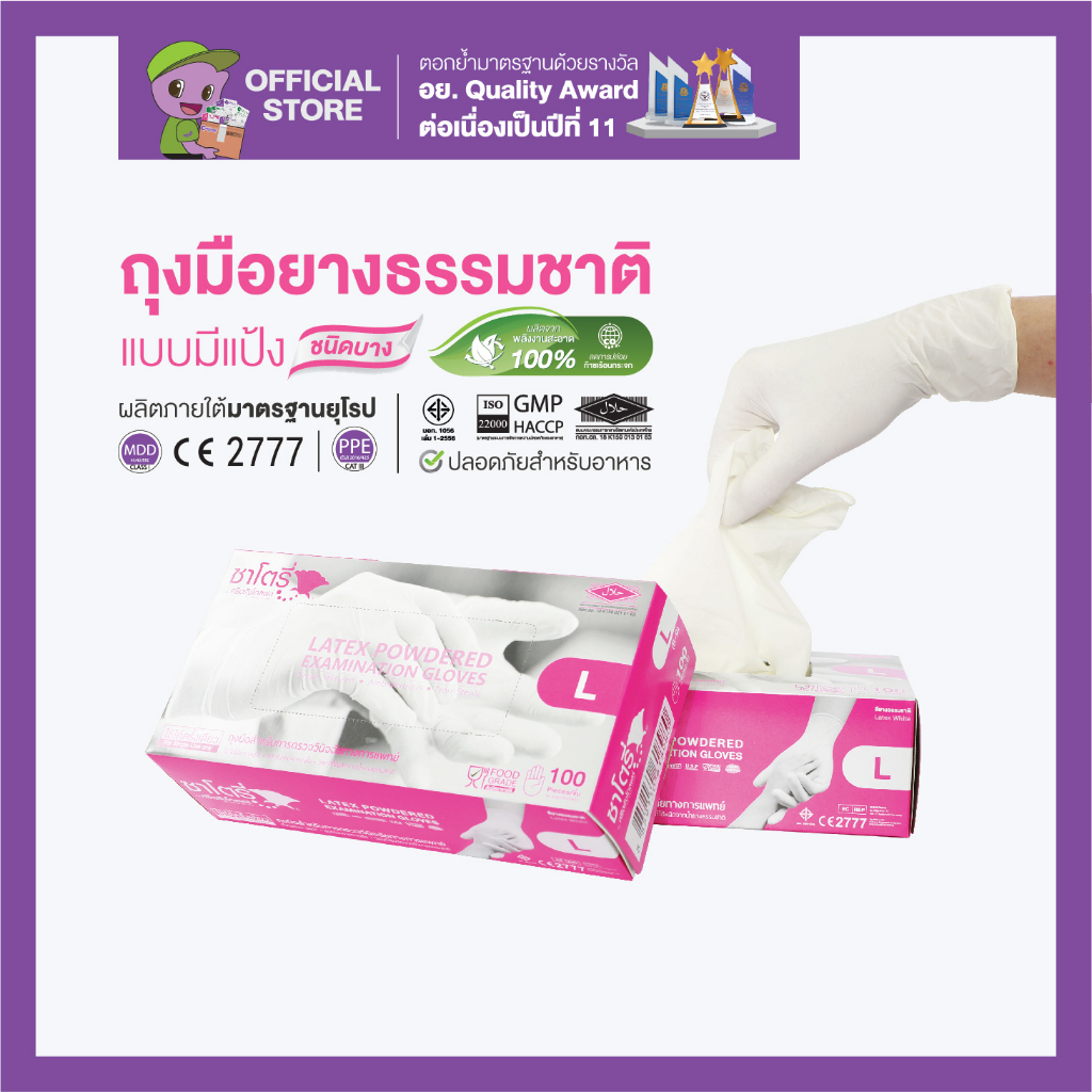 ศรีตรังโกลฟส์ - ซาโตรี่ (กล่องชมพู) ถุงมือยาง ธรรมชาติ แบบมีแป้ง [1กล่อง/100ชิ้น]