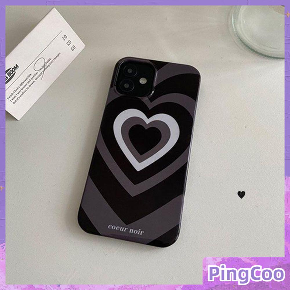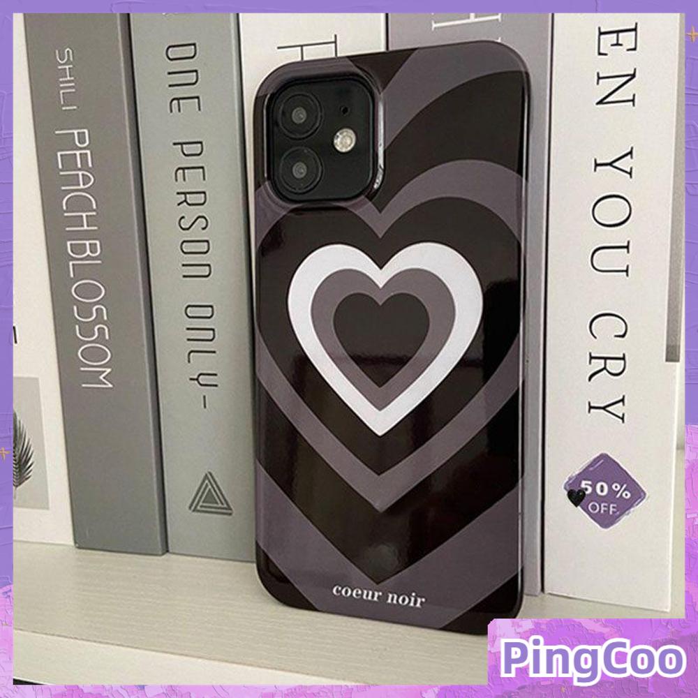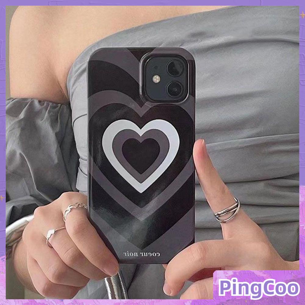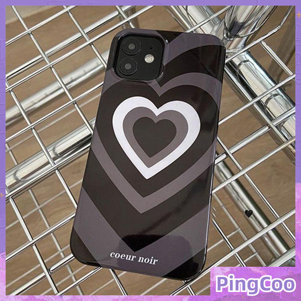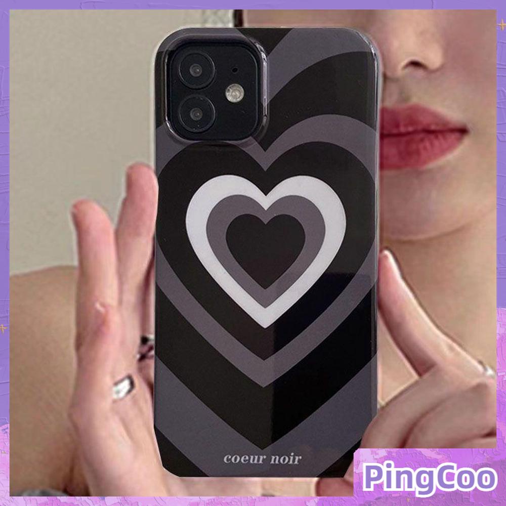 PingCoo - Candy Case For iPhone 14 13 12 11 Plus Pro Max XR TPU Soft Glossy Black Case Gray Love Circle Camera Protection Shockproof Back Cover