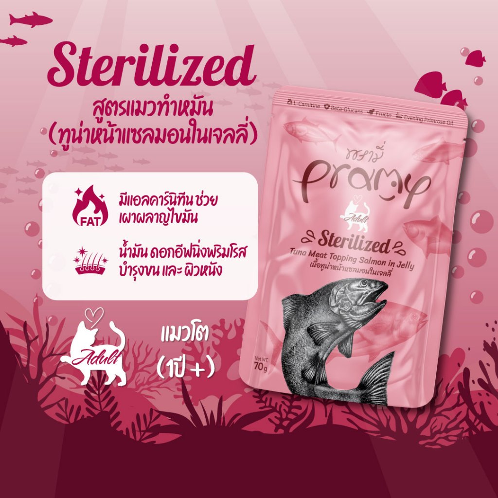 [12ซอง] Pramy พรามี่ อาหารเปียกแมว สูตรสำหรับลูกแมว แมวโต แมวสูงวัย ขนาด 70g. ยกโหล ไม่คละรส